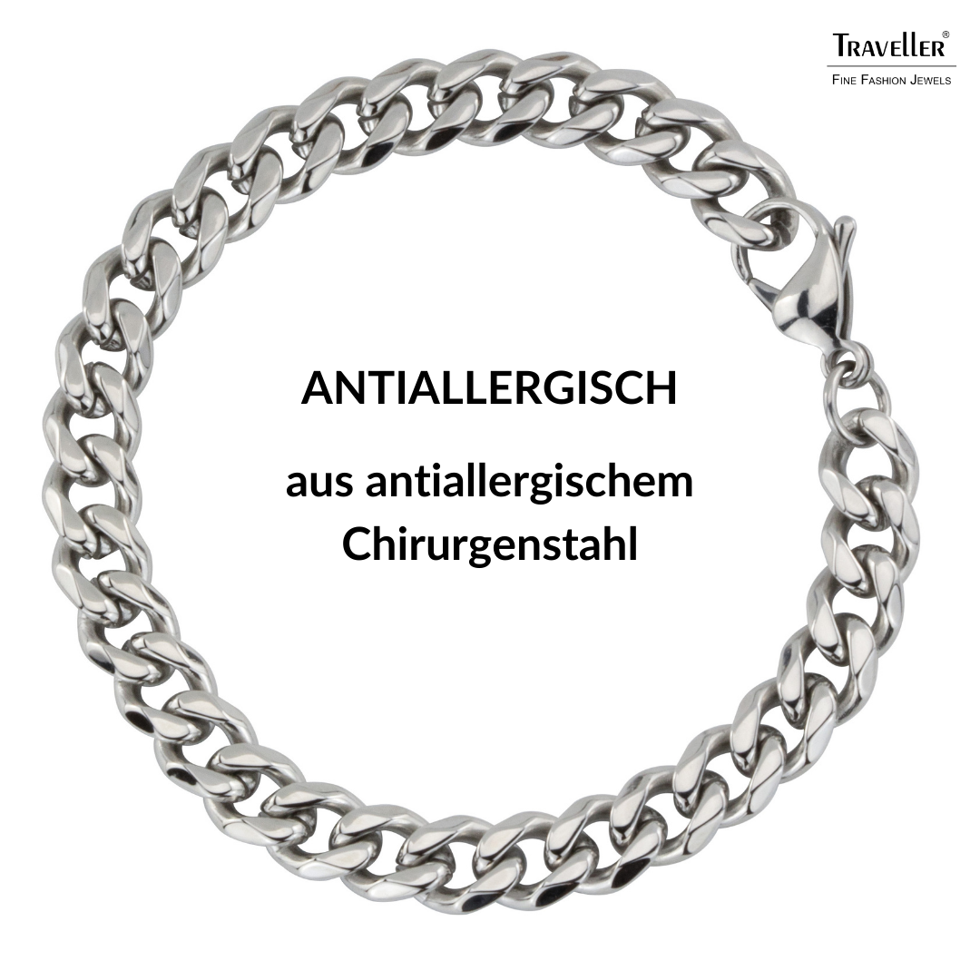 Dieses Armband vervollständigt jedes Outfit auf die schickste Art und Weise. Das silberfarbene Gliederarmband aus Edelstahl ist 22 Zentimeter lang und hat ein zeitloses, elegantes Design. Das Gewicht des Armbands beträgt 26 Gramm. Ergänzen Sie es mit der passenden Halskette.