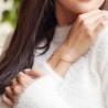 Das goldfarbene Armband hat ein anmutiges, minimalistisches Design mit sechs glitzernden tschechischen Kristallen. Das vollständig mit 23 Karat vergoldete Armband misst 57 x 48 Millimeter und ist leicht biegsam, so dass es sich leicht an- und ablegen lässt.