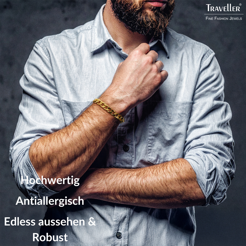 Traveller Armband - Herren - Edelstahl - Vergoldet - Glieder Armband - 21 x 1,10 cm