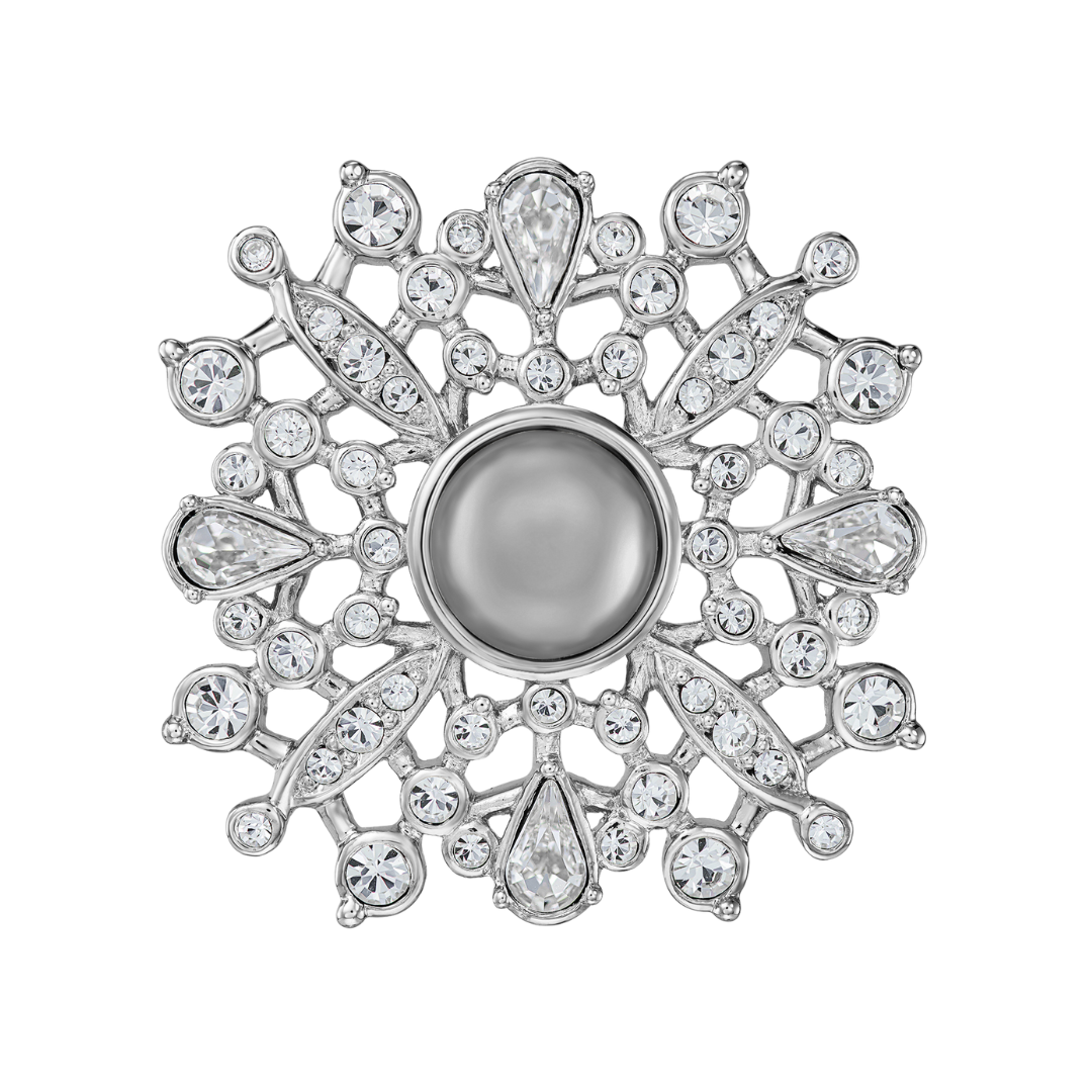 Traveller Brosche - Silberfarben - Halbe Perle - 10mm - Hell Grau - Kristalle - Platiniert - 33 mm