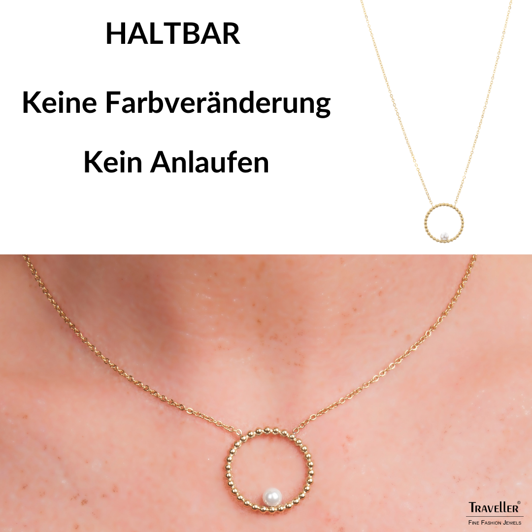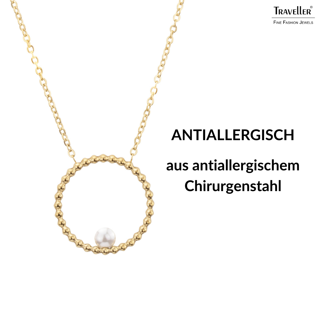 Traveller Collier - Edelstahl - Vergoldet - Süßwasser Perle - 4 mm - Anhänger 25 mm - 45+5 cm - 181235