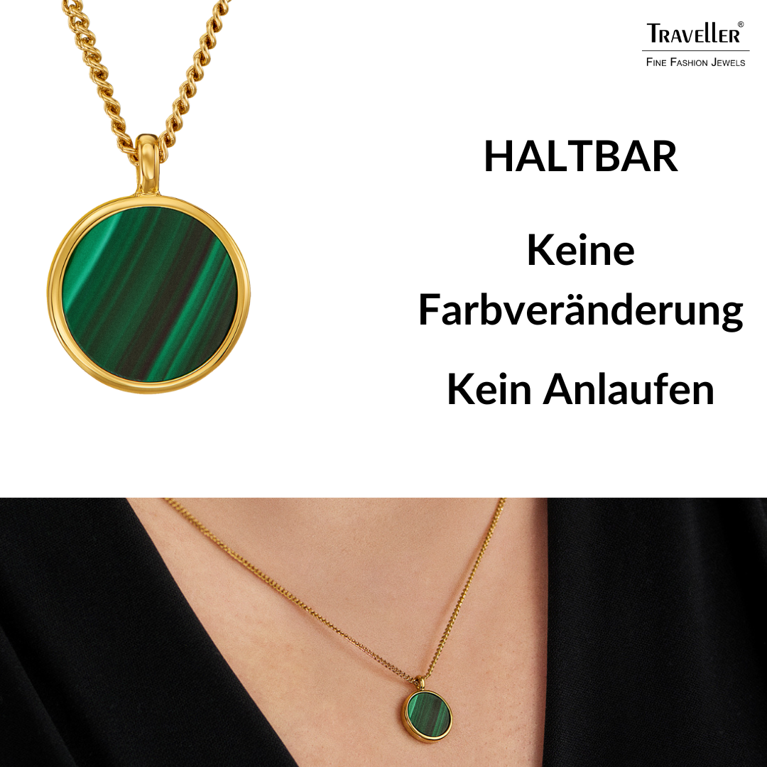 Traveller Kette mit Anhänger - 22kt Vergoldet - Echter Malachit - Grün - Ø 11mm - 40 + 4 + 4 cm - 112505