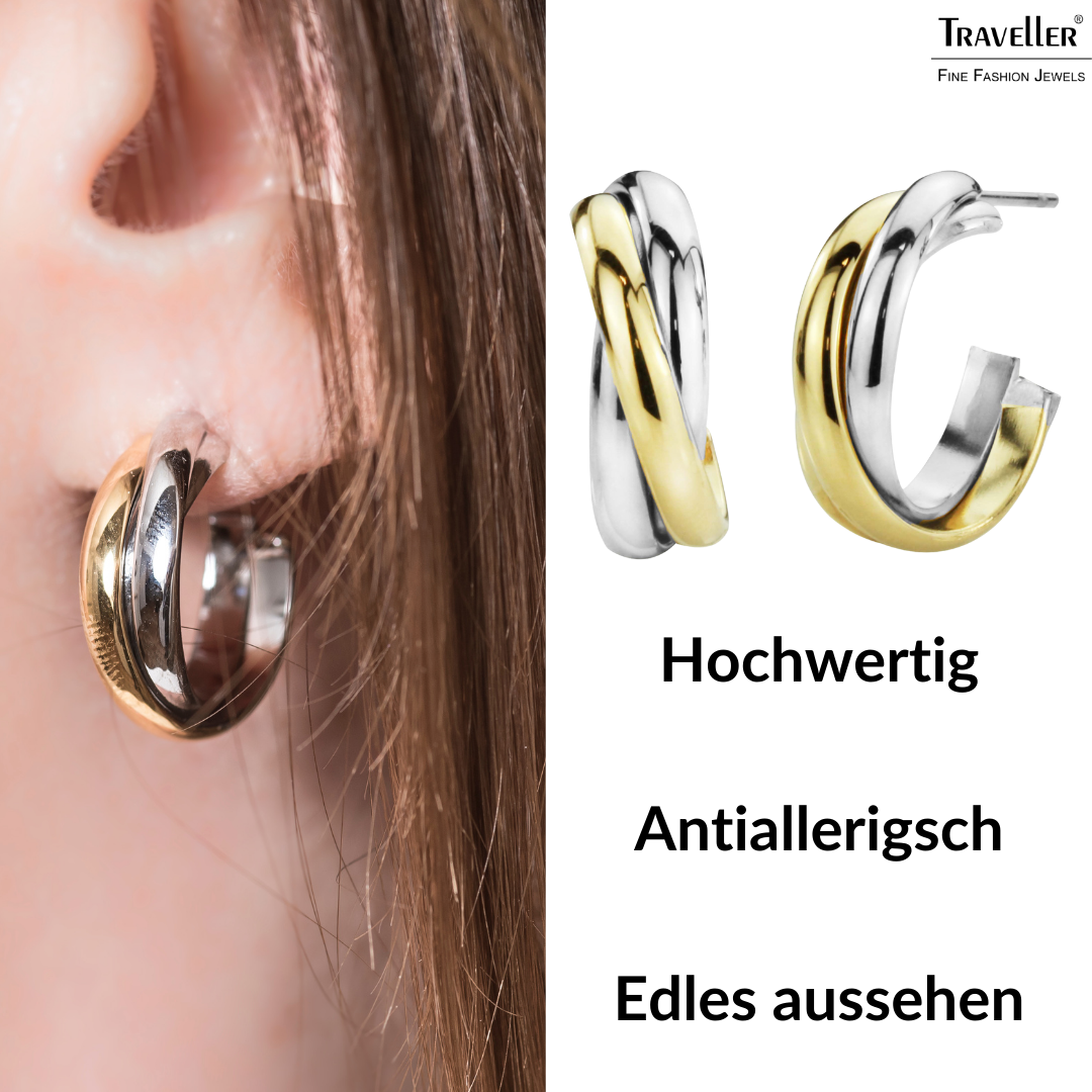 Traveller Creolen - Edelstahl - Bicolor - Gold- und Silberfarbe - Twist-effekt - 19 mm - 182046