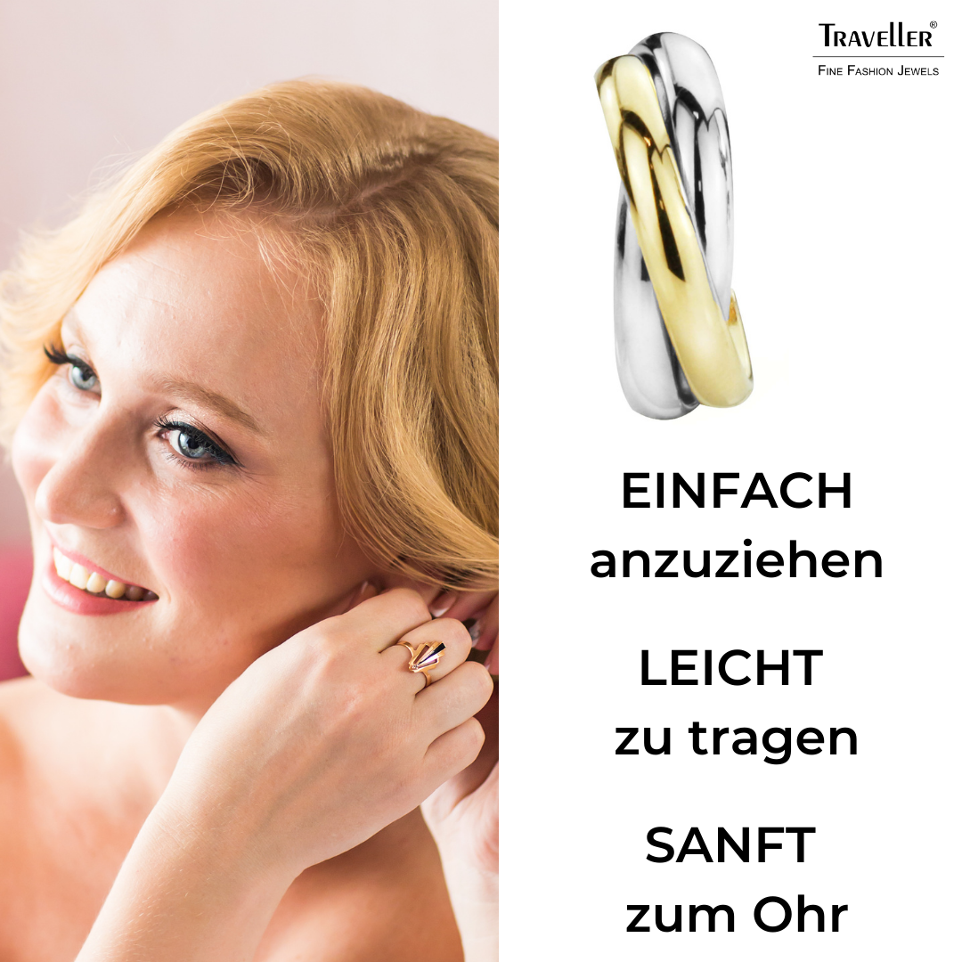 Diese edlen Ohrringe von Traveller lassen sich stilvoll zu allem tragen. Die Creolen haben zudem ein einzigartiges Design durch den Twist-Effekt. Die 2 farbenen (bicolor) Ohrringe aus Edelstahl haben einen Durchmesser von 19 Millimetern und sind 6 Millimeter breit.
