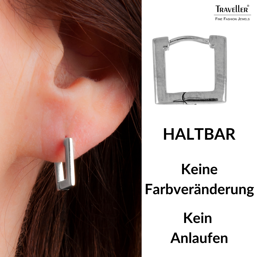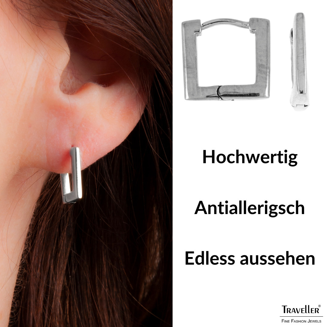 Traveller Creolen - Edelstahl - Silberfarbe - Rechteck - 12 mm - 181251