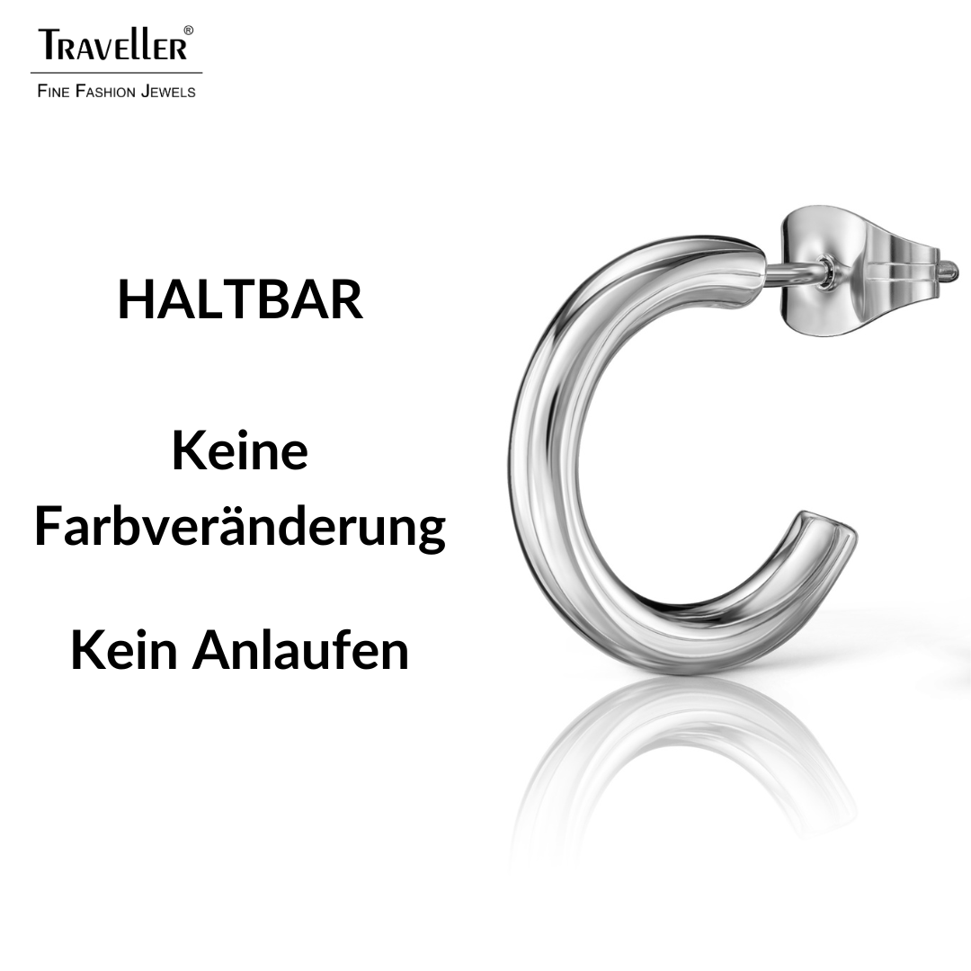 Traveller Creolen - Silberfarben - 3/4 Ring - Edelstahl - 15 x 2,5 mm - 166336