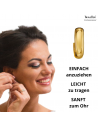 Ein zeitloses Design mit einem kleinen Twist ist das, was diese Ohrringe von Traveller am besten beschreibt. Diese Ohrstecker sind 2/3-Ohrringe, haben aber eine abgerundete, quadratische Form. Diese Details sorgen für einen etwas anderen Look. Die glänzenden Ohrringe sind aus goldfarbenem Edelstahl gefertigt. Die Ohrringe messen 22 x 6 Millimeter und wiegen jeweils 4 Gramm.