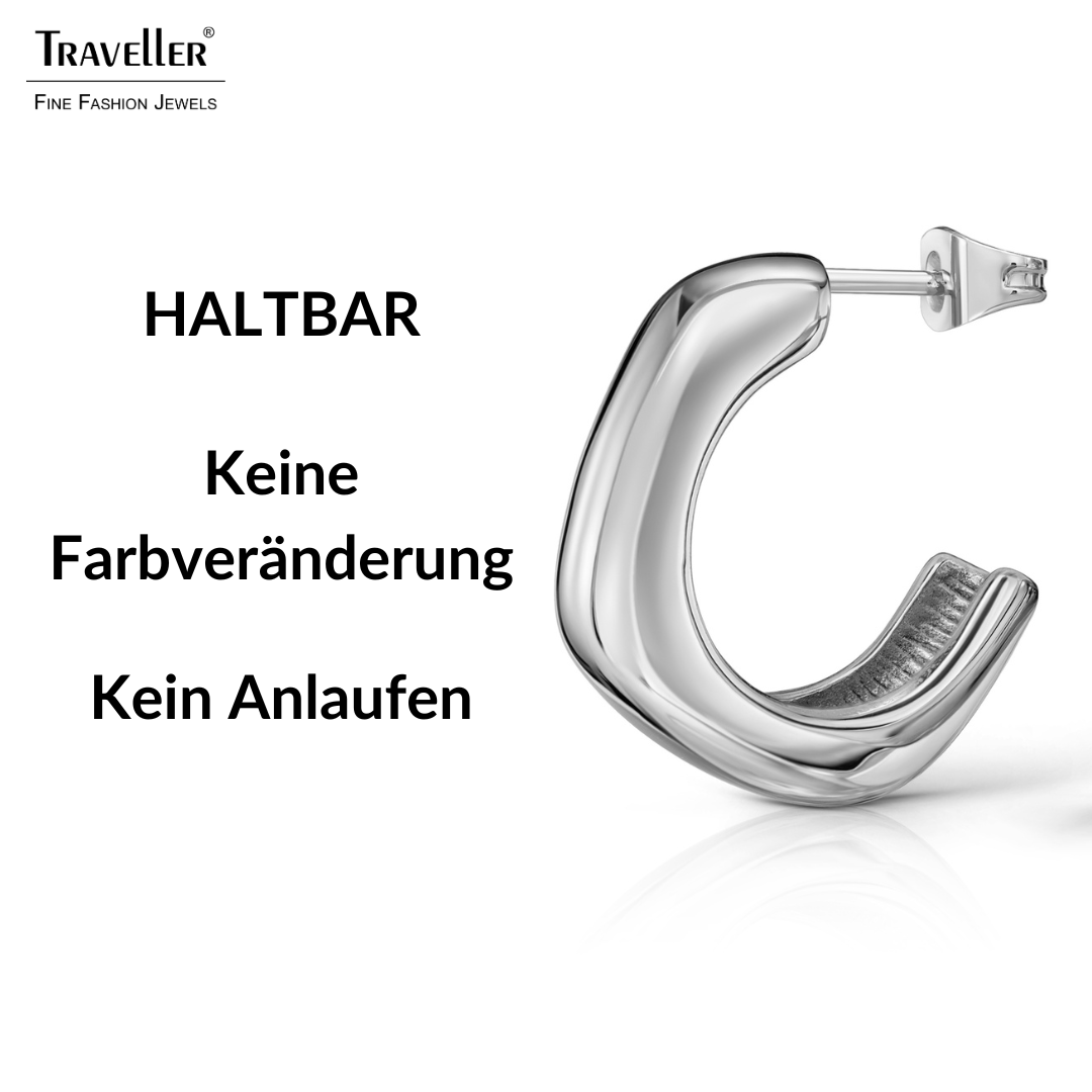 Traveller Creolen - Silberfarben - 2/3 Ring - Abgerundetes Quadrat - Edelstahl - 22 x 6 mm - 181284