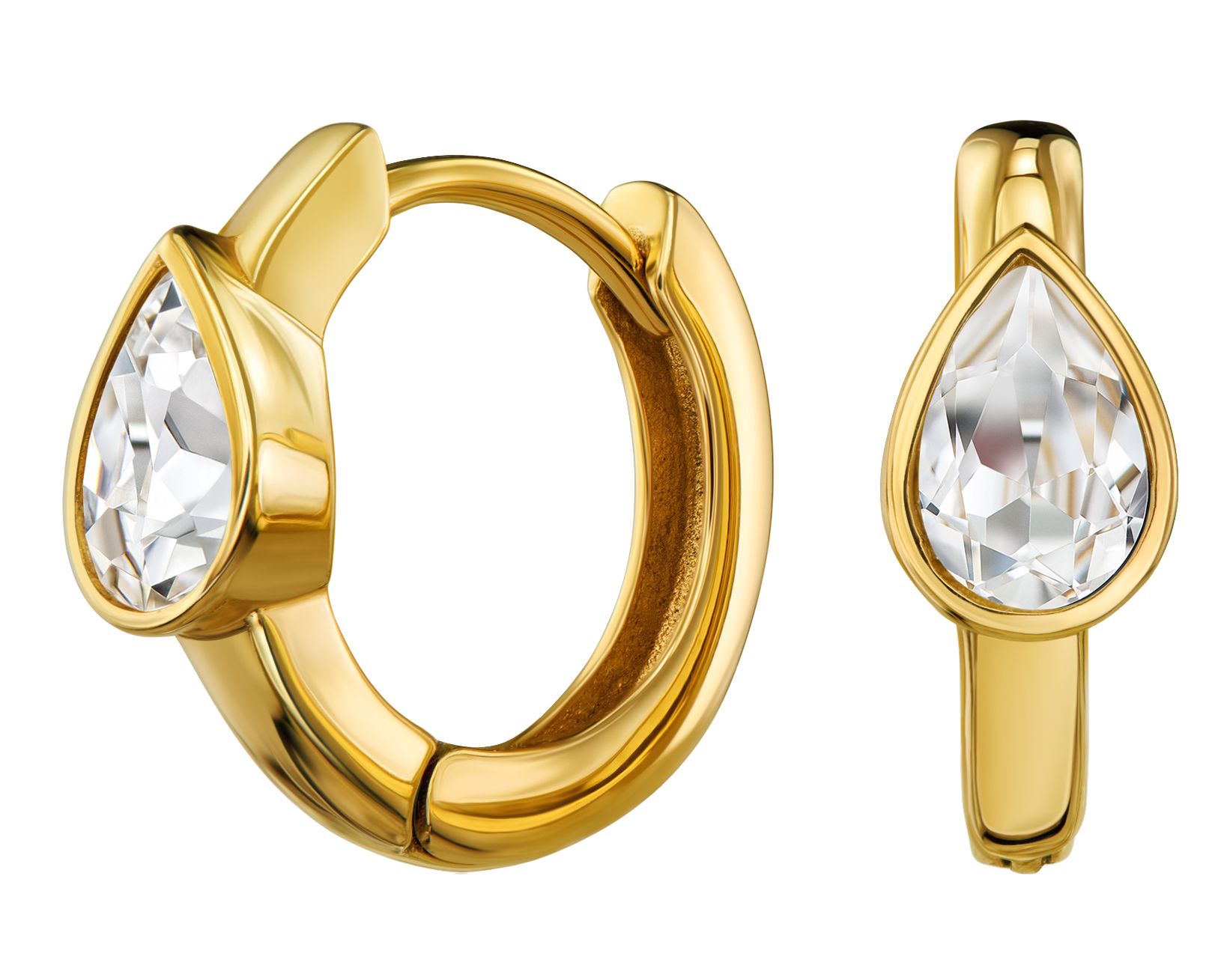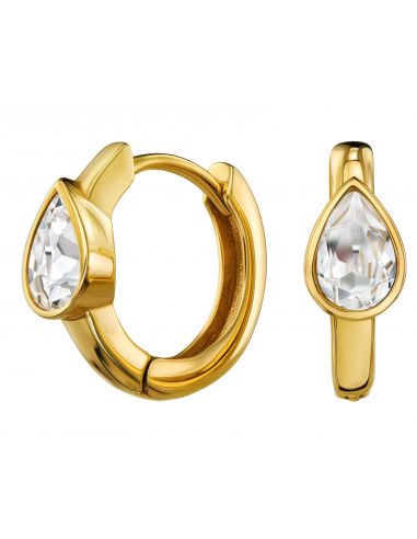 Diese besonderen Creolen von Traveller haben ein zeitloses Design mit einem modernen Look. Die goldfarbenen Edelstahlohrringe sind in der Mitte mit einem funkelnden, tropfenförmigen Zirkonia besetzt. Die Ohrringe haben einen Durchmesser von 15 Millimetern und wiegen jeweils 1 Gramm.