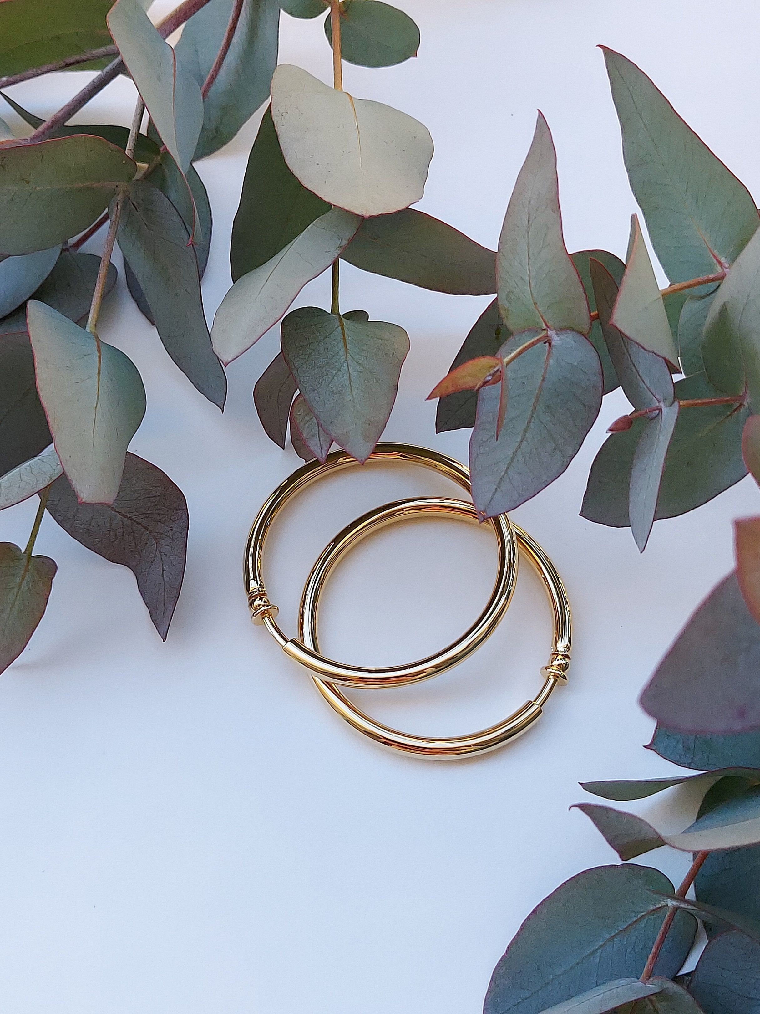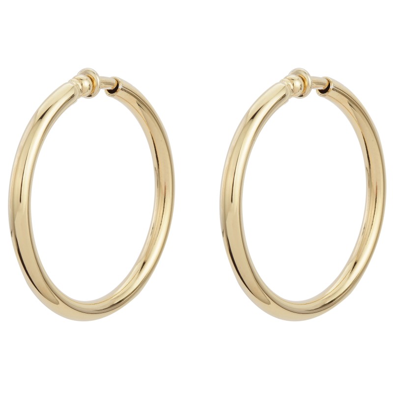 Wenn es ein Schmuckstück gibt, das zeitlos ist, dann ist es der Ohrring. Sie werden seit Jahrhunderten von verschiedenen Kulturen getragen. Diese 22 Karat vergoldeten (Kernmaterial: Metall) Ohrringe von Traveller sind speziell für alle, die Clips tragen. Die Ohrringe haben einen Durchmesser von 50 Millimetern, sind 4 Millimeter dick und wiegen jeweils 9 Gramm.