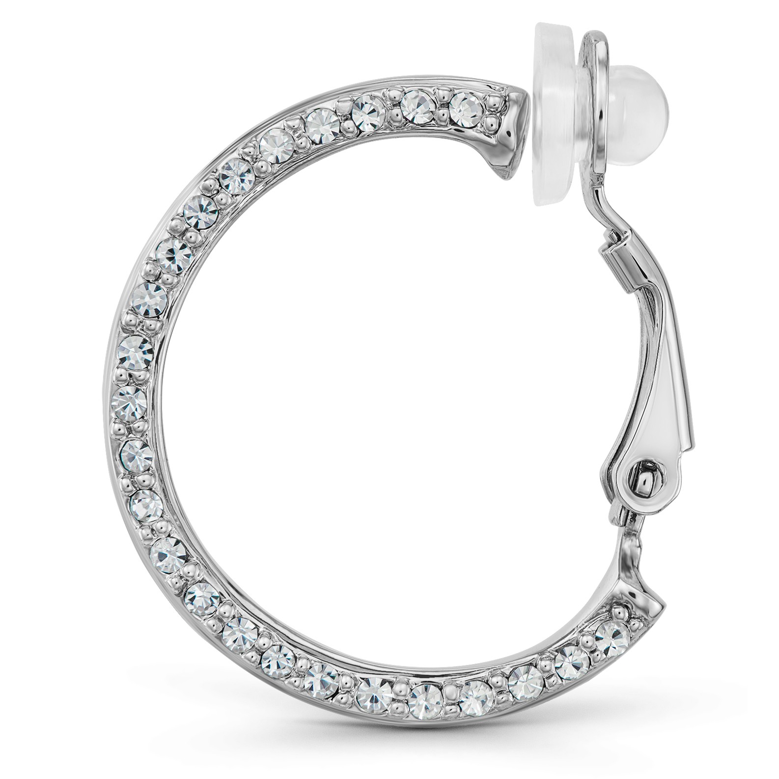 Wunderschöne Traveller Ohrclips! Ihr einzigartiges Design macht sie zu etwas ganz Besonderem. Diese platinierten Creolen bestehen aus drei verschiedenen Komponenten: einem äußeren Band mit funkelnden Preciosa Kristallen, einem glänzenden silberfarbenen Mittelband und einem glänzend dunkel Blaue Emaille Band auf der Innenseite. Die Creolen haben einen Durchmesser von 23 Millimetern, sind 4 Millimeter breit und wiegen jeweils nur 2,7 Gramm. Dank des einzigartigen Verschlusssystems von Traveller sind unsere Ohrclips bequem, leicht und sicher zu tragen.