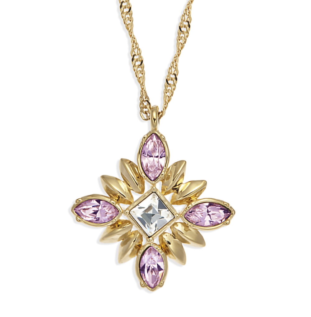 Die Linie Athene von Grossé, benannt nach der griechischen Göttin der Weisheit, besteht aus Schmuckstücken, die die Göttin in jeder Frau zum Vorschein bringen können. Das atemberaubende, klassische Design bringt Sie zum Strahlen und Glänzen. Der Anhänger dieser 22 Karat vergoldeten Halskette (Kernmaterial: Weißmetall) mit Strasssteinen zeichnet sich durch einen Hauch von Rosa (heller Amethyst) aus und misst 2 x 2,5 Zentimeter. Die Kette ist in der Länge verstellbar (38 + 5 Zentimeter) und wiegt insgesamt nur 4 Gramm. Ergänzen Sie sie mit den passenden Ohrringen!