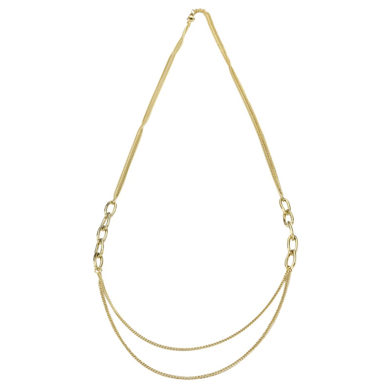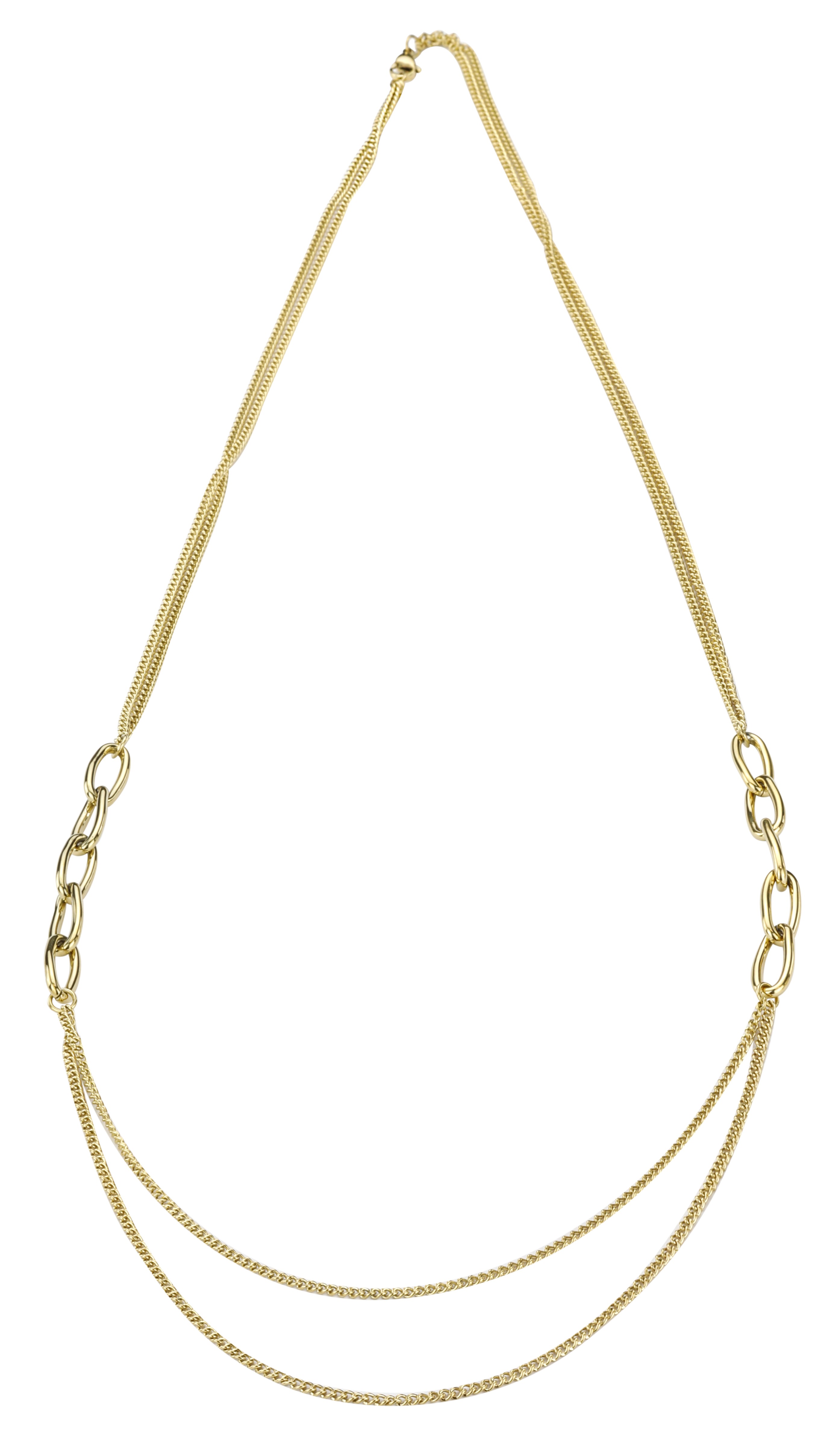 Eine doppelte Kette ist doppelt so schick und außerdem total trendy! Diese schöne lange Kette von Traveller ist mit ihrem Layered-Look ein strahlender Beweis dafür. Die Edelstahlkette ist vollständig vergoldet und hat ein schönes Design mit feinen Doppelstücken und großen Gliedern. Vom Verschluss aus verlaufen zwei feine doppelte Gliederketten zu einer Reihe strahlender offener Glieder, und von dort verbinden zwei feine Doppelketten diese wunderschöne Kette zu einem Ganzen. Die Kette hat eine Länge von 90 Zentimetern und eine Verlängerung von 5 Zentimetern, sodass diese einzigartige Kette in verschiedenen Längen getragen werden kann.