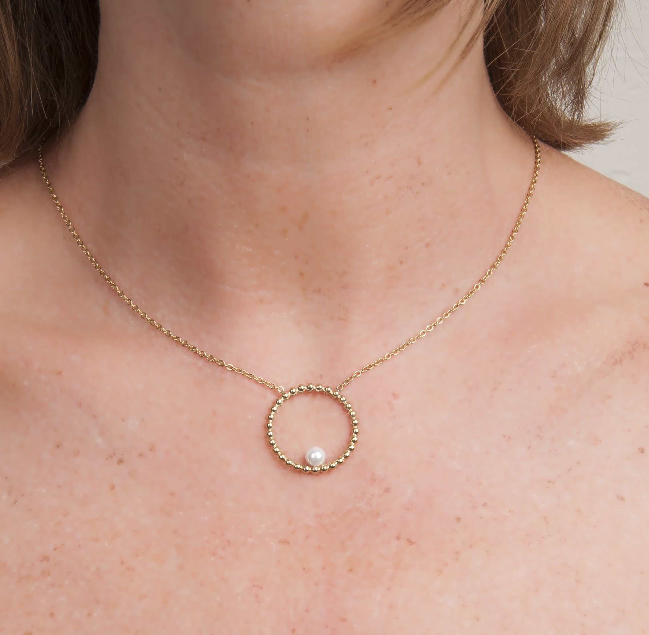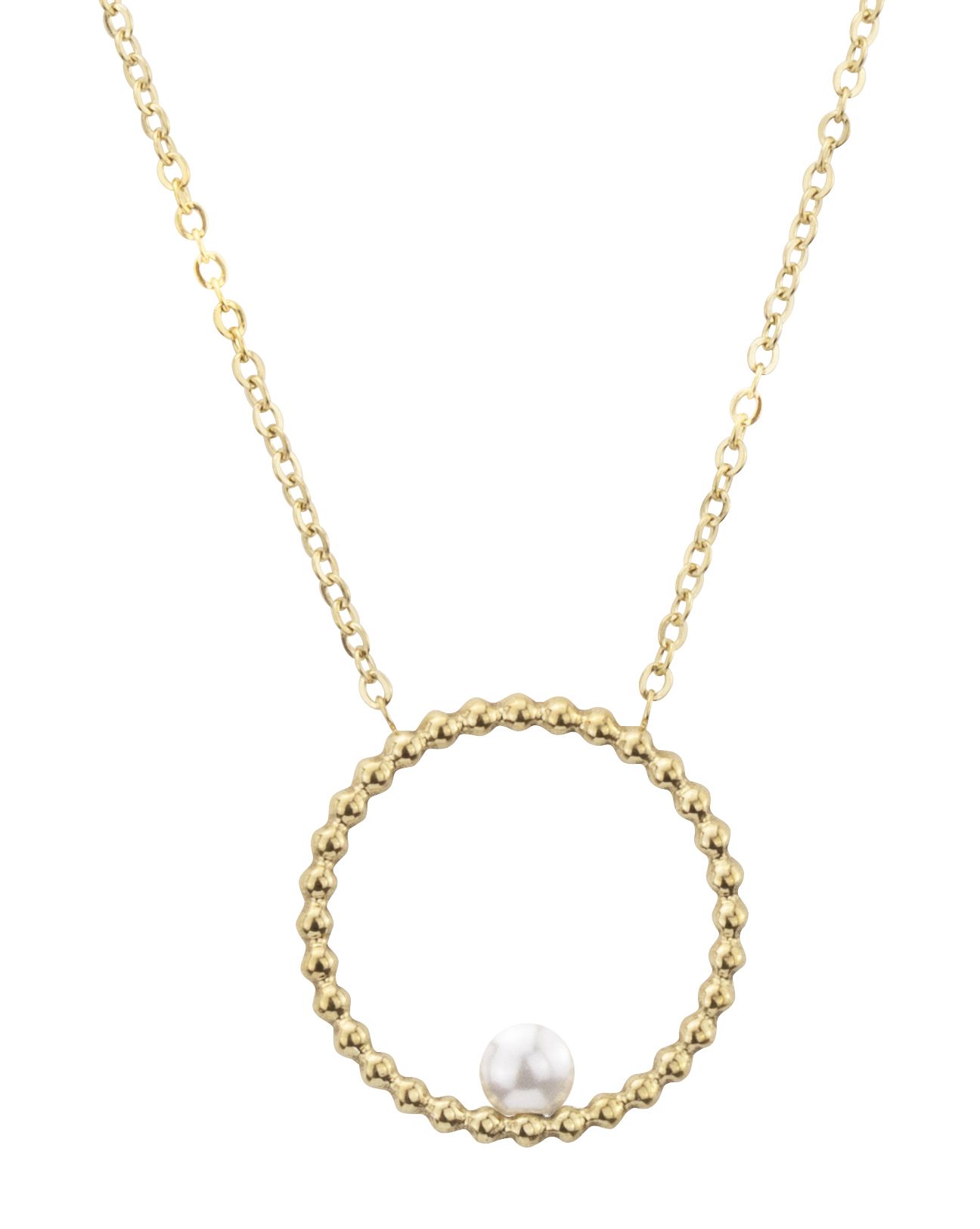 Traveller Collier - Edelstahl - Vergoldet - Süßwasser Perle - 4 mm - Anhänger 25 mm - 45+5 cm