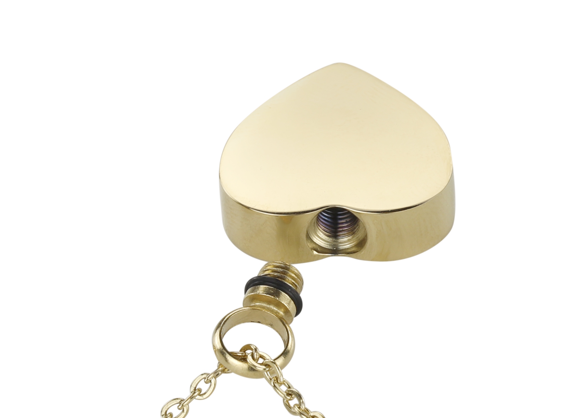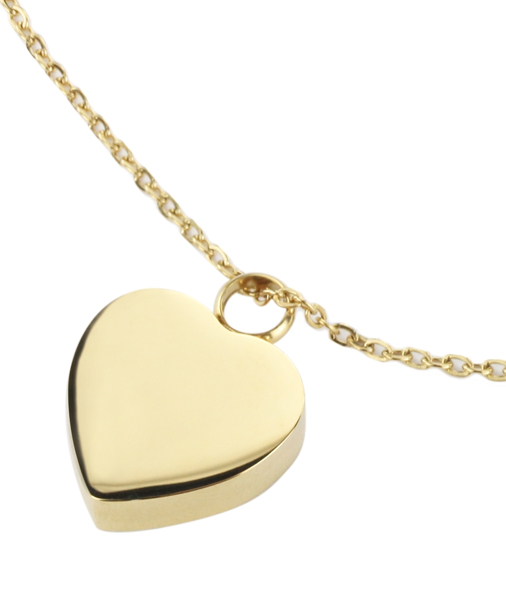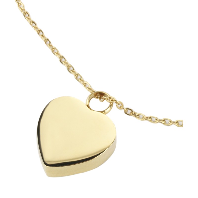 Traveller Collier mit Urnenanhänger - Aschenanhänger - 2x2cm - Goldfarbe - Herz - Edelstahl - 45-50cm