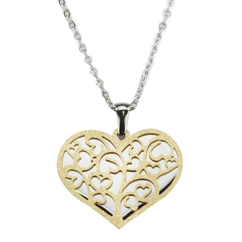 Traveller Halskette mit Anhänger - Bicolor - Herz - Ø 30mm - Edelstahl - 22kt vergoldet - 42+4 cm