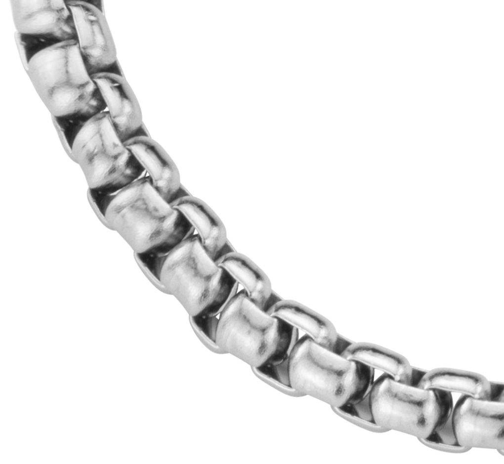 Silberne Farbe und ein luxuriöser Look machen dieses Armband von Traveller zu einem eleganten Accessoire. Das Edelstahlarmband besteht aus kurzen, kleinen silberfarbenen Gliedern. Das Armband ist 21 Zentimeter lang und wiegt 15 Gramm. Ergänzen Sie es mit der passenden Collier.