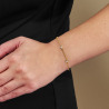 Dezent, klassisch und strahlend. Das ist dieses Armband von Traveller. Das goldfarbene Armband ist vollständig mit 22 Karat Gold plattiert und enthält 5 wunderschön strahlende Zirkonia. Das Armband ist 17 Zentimeter lang und hat 2 Verlängerungsstücke von 1,5 Zentimetern, so dass es in der gewünschten Länge getragen werden kann. Das Armband wiegt etwa 2 Gramm. Ergänzen Sie es mit der passenden Halskette (157758) und Ohrhänger (157762)!