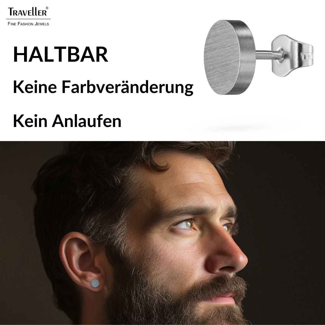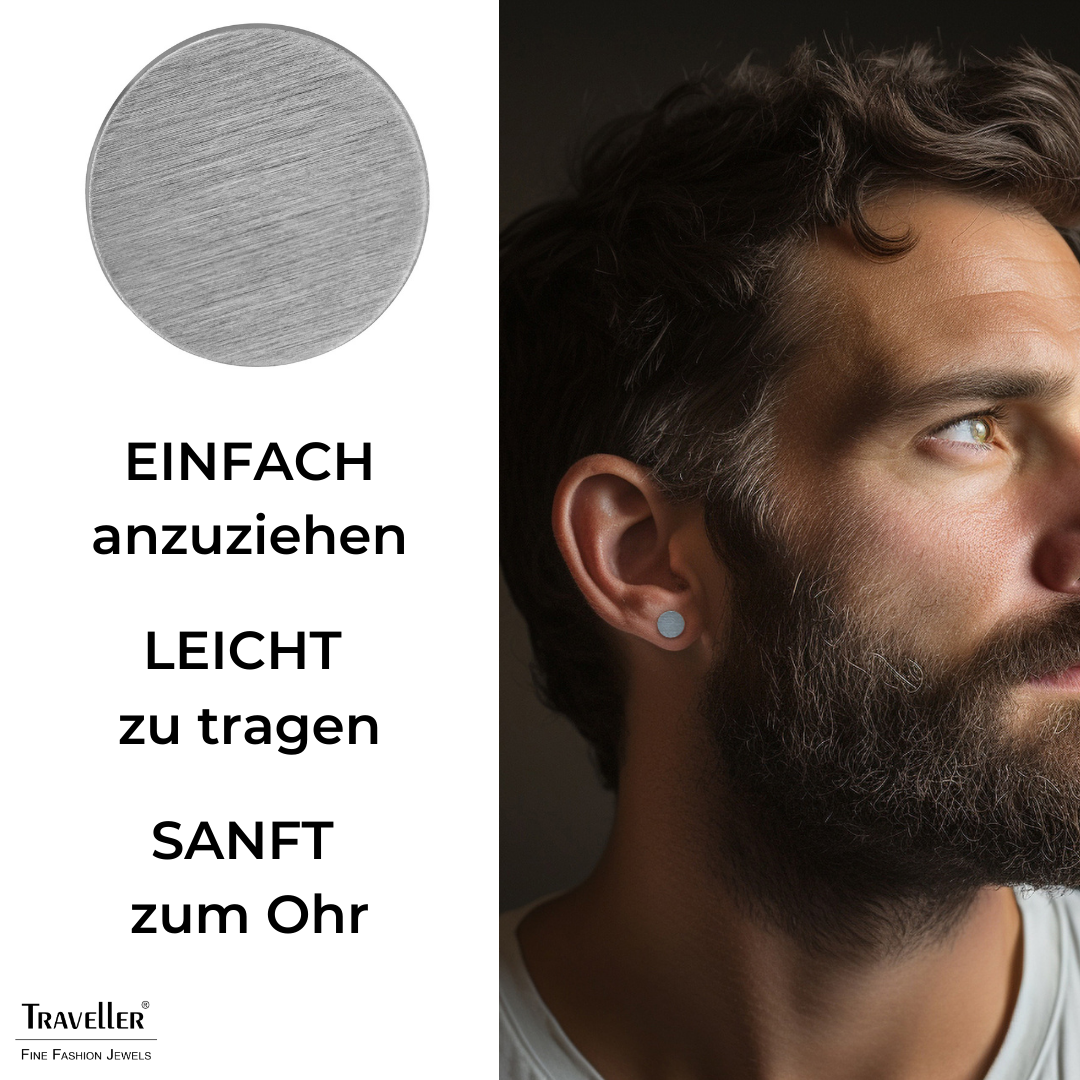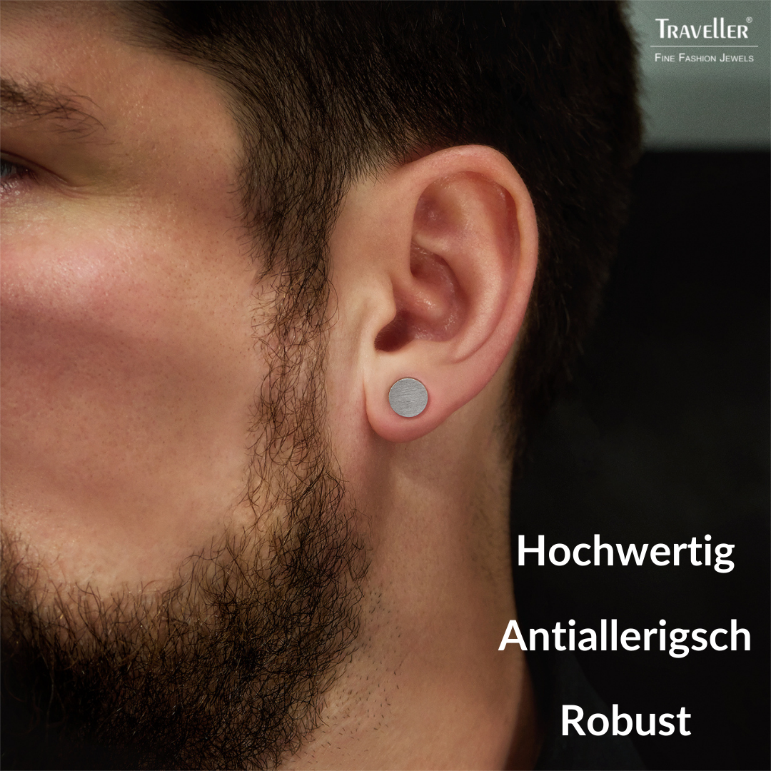 Traveller Ohrstecker - Herren - Edelstahl - Silberfarben - Matt - Rund - 8 mm - 181246