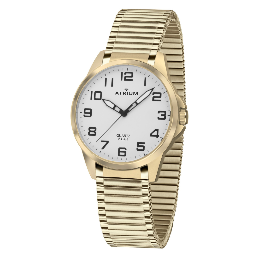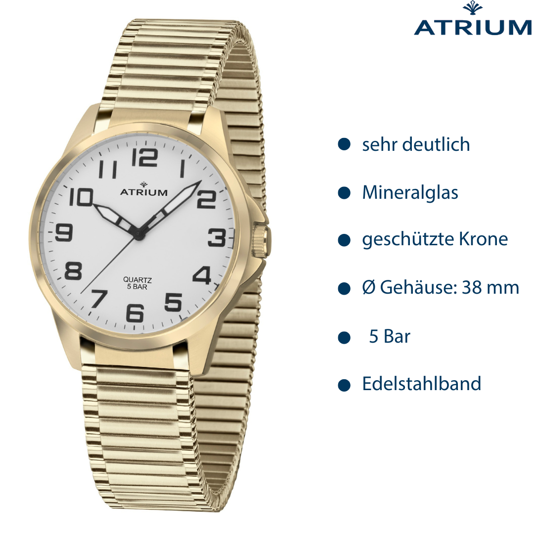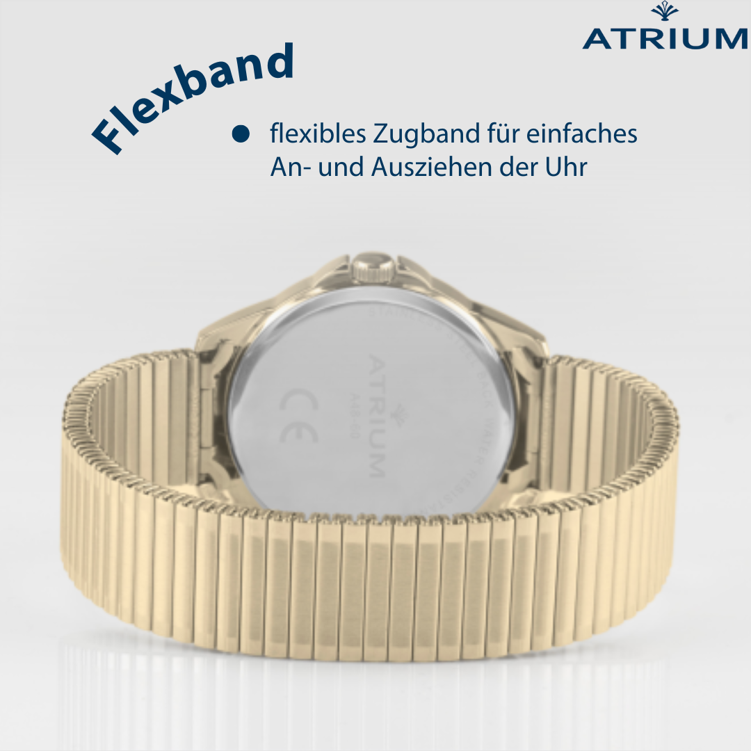 ATRIUM Armbanduhr - Herren - Vergoldet - Zugband aus Edelstahl (19,5cm) - 5 Bar - Klar - Quartz - A48-60