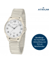 Die klassische Herren Zugbanduhr A48-60 von ATRIUM vereint praktischen Nutzen und schlichte Eleganz in einem - perfekt als täglicher Begleiter. Mit einem Gehäusedurchmesser von 38 Millimeter und einer Höhe von 9 Millimeter liegt die Uhr angenehm am Arm an. Die Uhr ist mit einem Mineralglas und 5 bar Wasserdichtigkeit gut vor Wasser geschützt. Das deutliche Zifferblatt lässt sich durch den Kontrast von schwarzen Ziffern, Zeigern und Minuteneinteilung auf weißem Grund sehr gut ablesen. Ein unkompliziertes An- und Ablegen der Uhr ermöglicht das 18 Millimeter breite Flexband – somit auch ideal für Senioren. Der innere Gesamtumfang der Uhr ist bei Auslieferung 19,5 Zentimeter und lässt sich mit etwas Fachwissen auch auf einen kleineren Armumfang kürzen. Das japanische Miyota-Quarzwerk sorgt für eine präzise analoge Zeitanzeige. Die Lieferung erfolgt in der ATRIUM Geschenkbox und eignet sich somit bestens als Geschenk für alle Anlässe wie z.B. Geburtstag, Hochzeitstag, Vatertag oder Weihnachten.