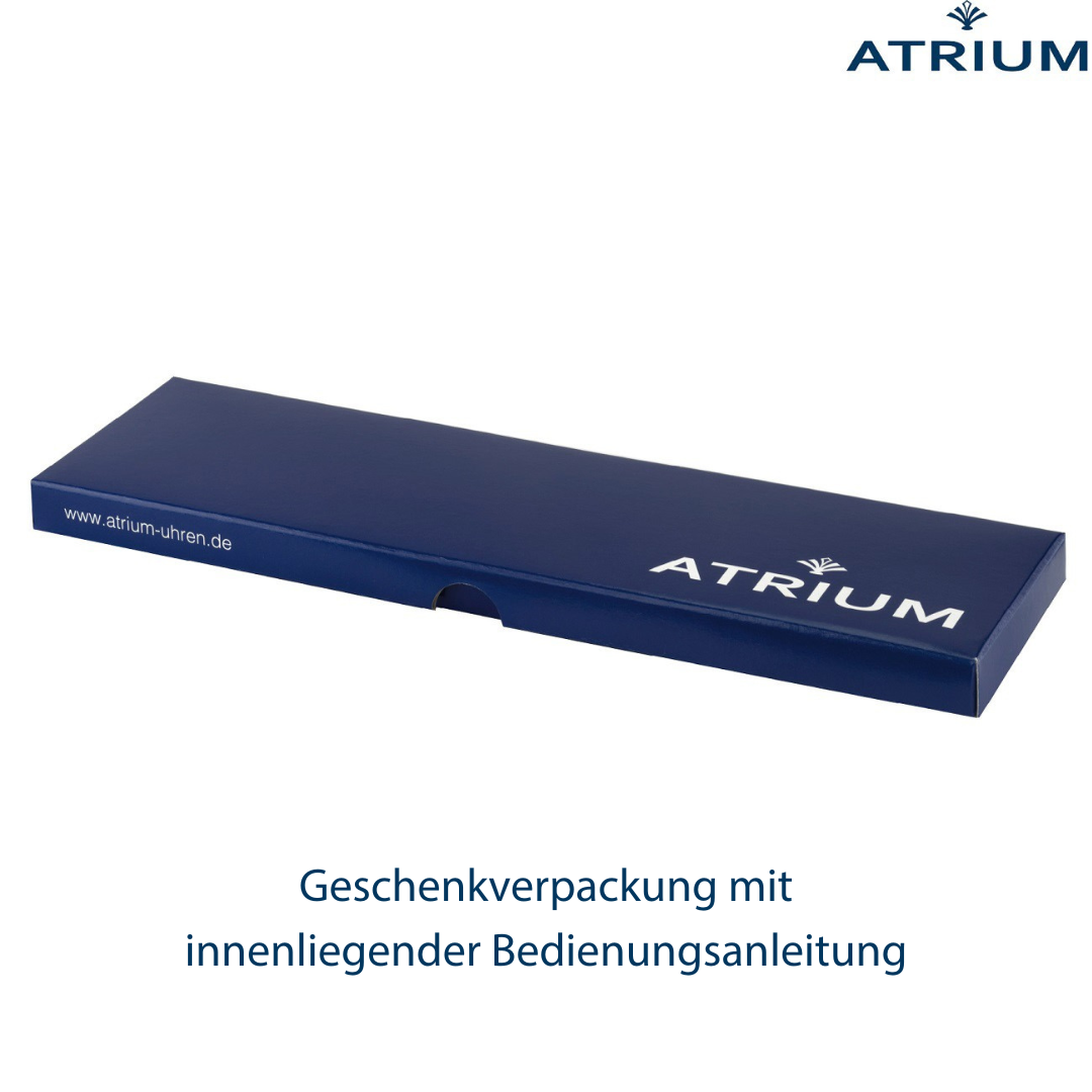 ATRIUM übernimmt die Gewährleistung für das Uhrwerk für einen Zeitraum von 2 Jahren ab Kaufdatum und hält einen unkomplizierten Service in Deutschland vor.