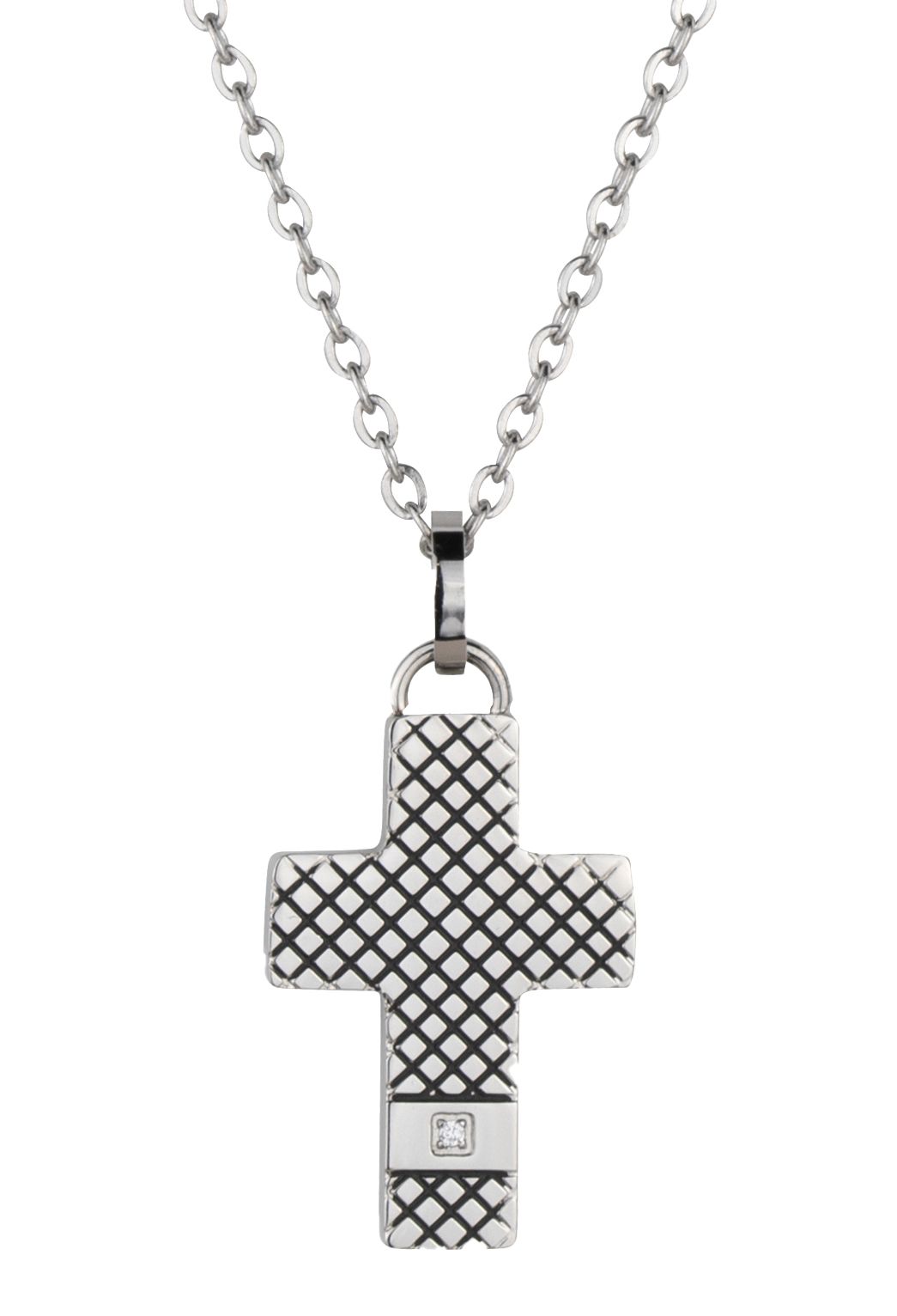 Traveller Kreuz Kette - Herren - Kette Man - Edelstahl - Zirkonia - 50+5cm lang