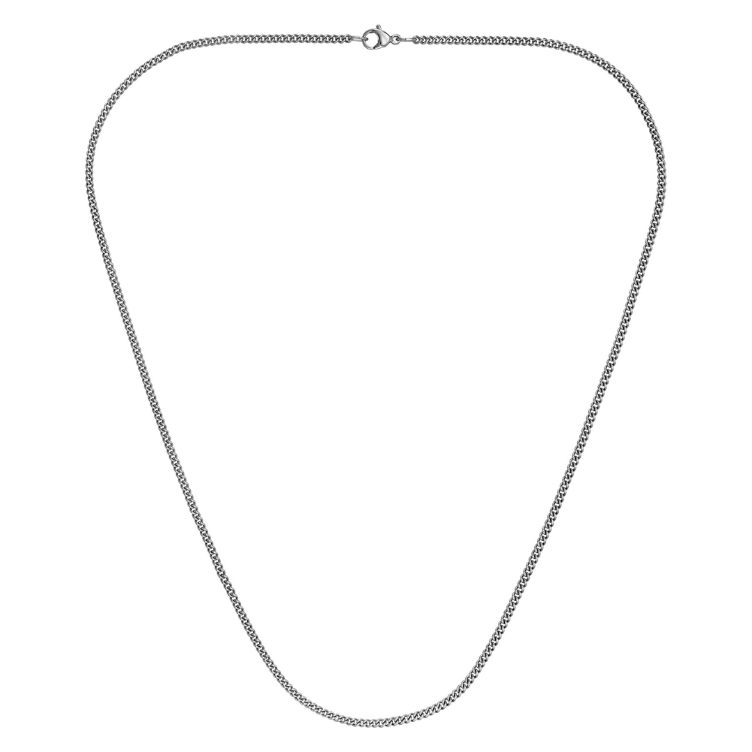 Eine zeitlose, stilvolle Halskette von Traveller, modisch und dezent. Diese silberfarbene Edelstahlkette ist 50 cm lang und 2,1 mm breit.