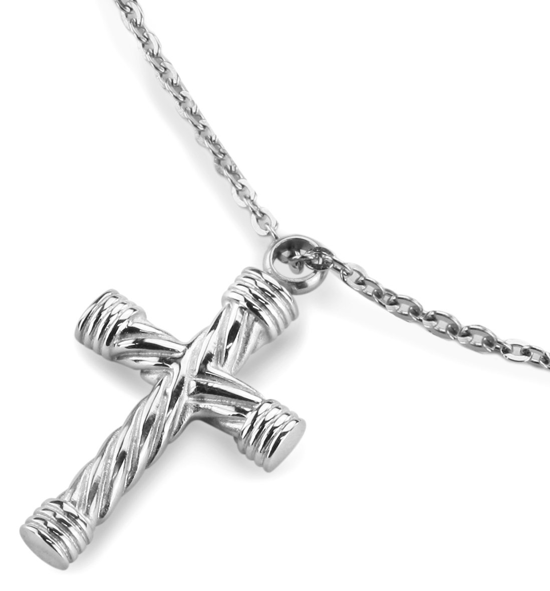 Traveller Collier mit Urnenanhänger - Aschenanhänger - 35x23mm - Silberfarbe - Kreuz - Edelstahl - 50-55cm