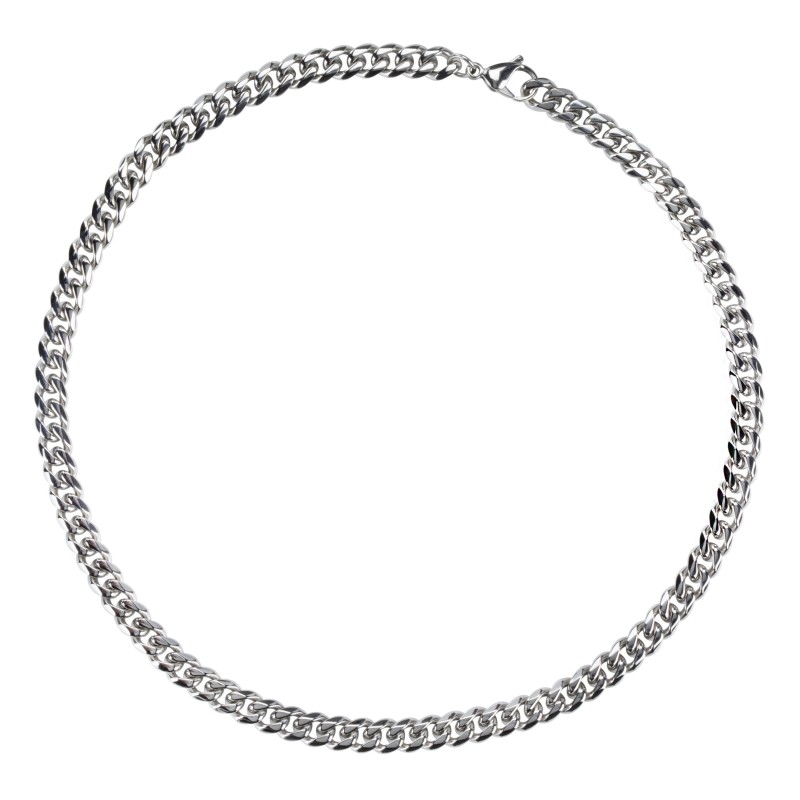 Eine zeitlose, stilvolle Halskette von Traveller, modisch und robust. Diese silberfarbene Edelstahl-Halskette ist 55 Zentimeter lang und 9 Millimeter breit. Die Halskette wiegt 65 Gramm. Ergänzen Sie sie mit dem passenden Armband!