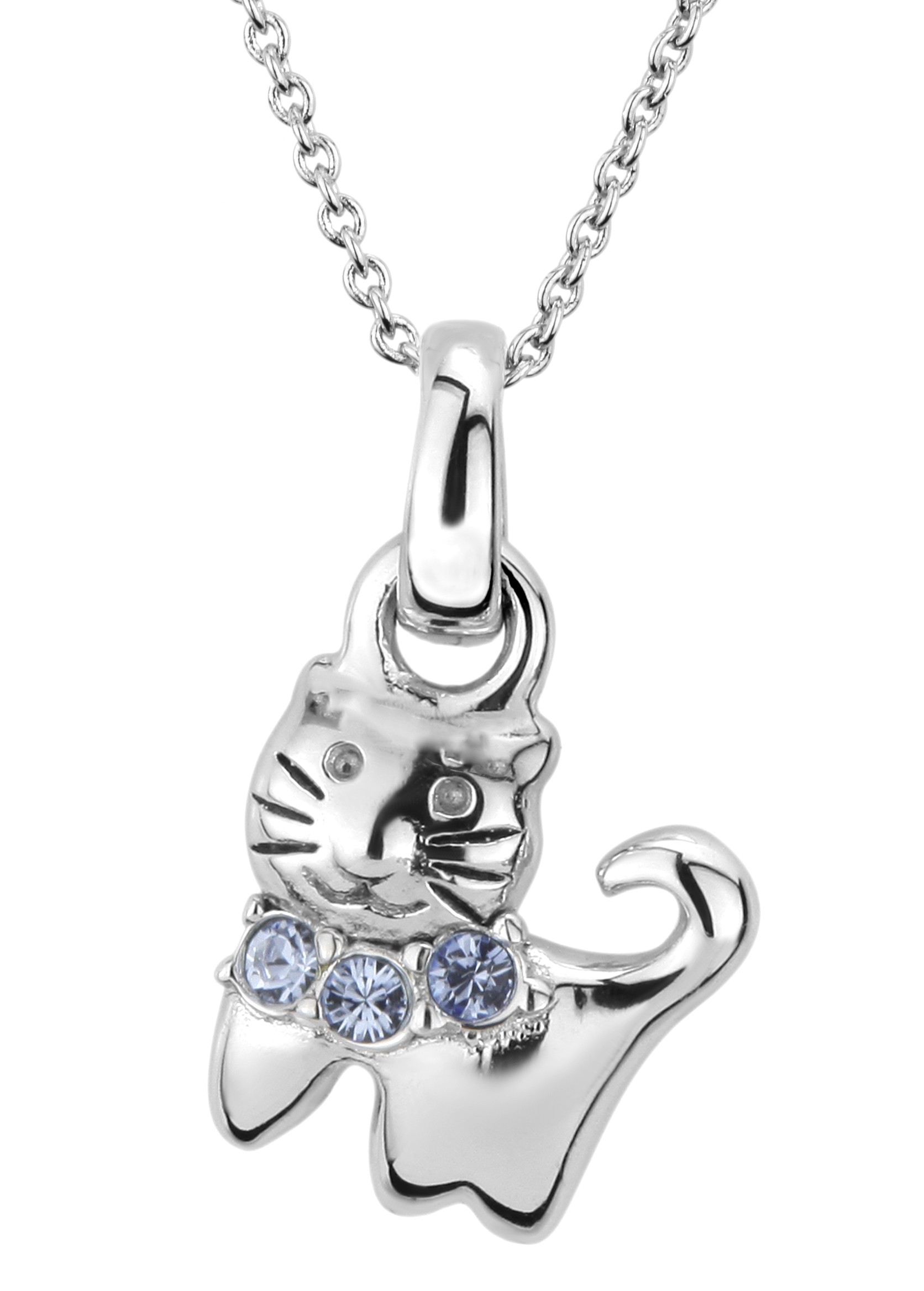Traveller Anhänger mit Kette - Katze Feles - Mädchen - Sterling Silber - Kristalle - Hell Blau