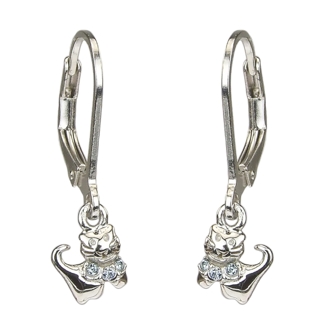 Traveller Ohrhänger - Katze Feles - Kinder - Sterling Silber - Kristalle - Hell Blau