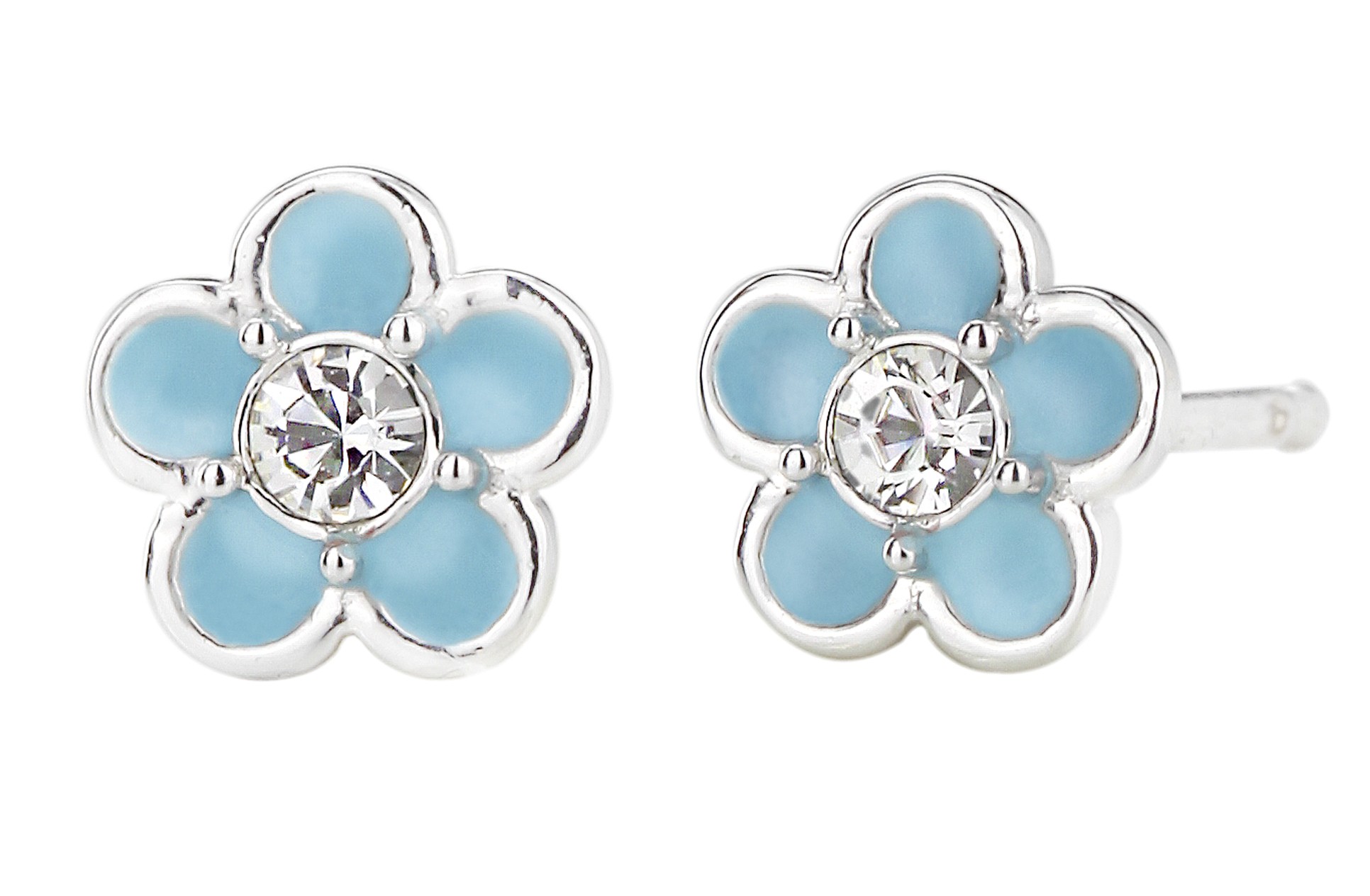 Traveller Ohrstecker - Mädchen - Kristalle - Blume - Hell Blau - Sterling Silber 925