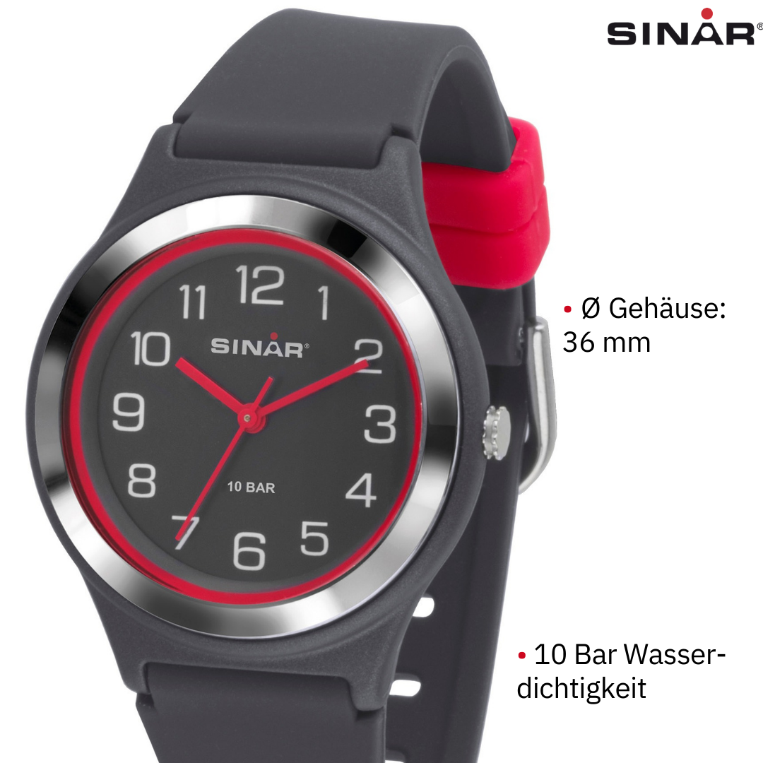 Selten sind die Eigenschaften trendig, angenehm zu tragen und zugleich robust so attraktiv vereint wie bei diesem Modell der deutschen Marke SINAR. Die harmonische Farbkombination aus Dunkelblau und Orange im Zusammenspiel mit der matten Stahllünette fügen sich zu einem überzeugenden stylishen Accessoire zusammen. Den perfekten Tragekomfort bieten das flache Gehäuse und das softe und gut hautverträgliche Silikonband. Die hohe Wasserdichtigkeit von 10 Bar sichert eine perfekte Alltags- und Urlaubstauglichkeit für Outdoor Aktivitäten. Ein Modell, welches sich zu vielen Outfits sportlich cool kombinieren lässt und auch ideal als Geschenk für Andere oder sich selbst geeignet ist.
