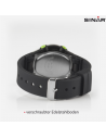 - Kunststoff GEHÄUSE 34 mm Durchmesser mit verschraubtem Boden aus Edelstahl, durch 10 bar Wasserdichtigkeit kann die Uhr zum Schwimmen getragen werden