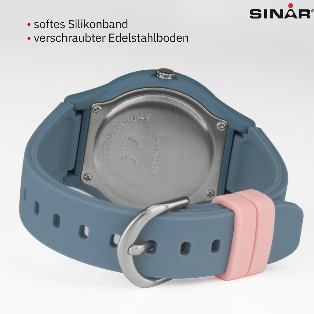 Egal ob in der Schule, in der Freizeit oder beim Sport - die analoge SINAR Uhr XB-48-22 ist vielseitiger, zuverlässiger und strapazierfähiger Begleiter im Alltag und gleichzeitig ein trendy Accessoire, das sich super zu sportlichen Outfits kombinieren lässt.