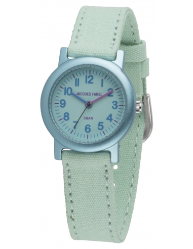 Jacques Farel ECO Kinderuhr - Mint - CO2-neutral - Bio-Baumwolle - 3 Bar - Verstellbares Armband