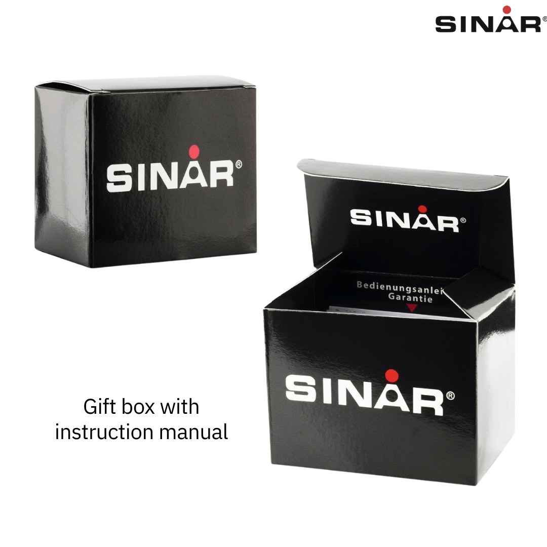 SINAR übernimmt die Gewährleistung für das Uhrwerk für einen Zeitraum von 2 Jahren ab Kaufdatum und hält einen unkomplizierten Service in Deutschland vor.