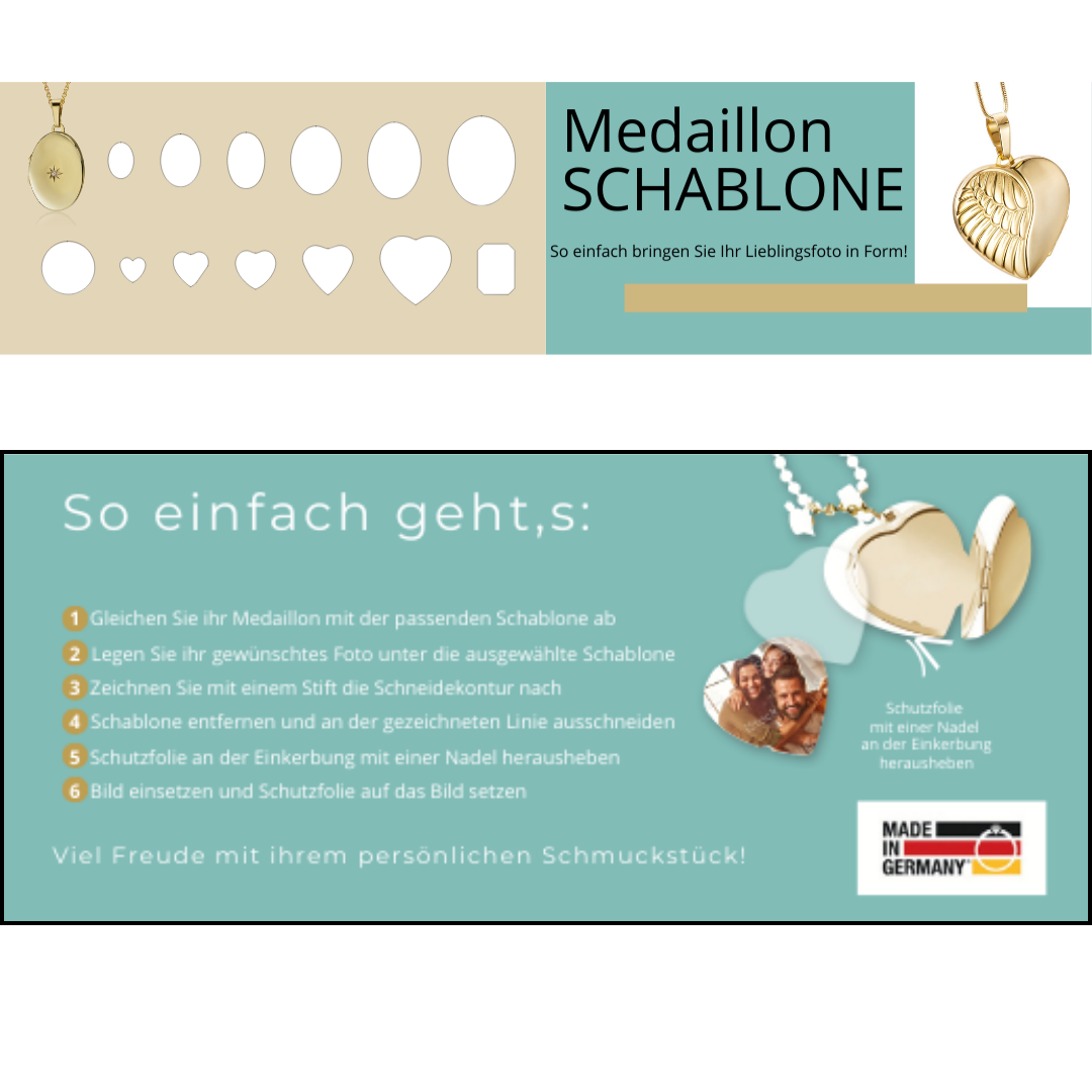 - Mit Medaillon SCHABLONE zum einfaches Ausschneiden Ihres Lieblingsfotos.