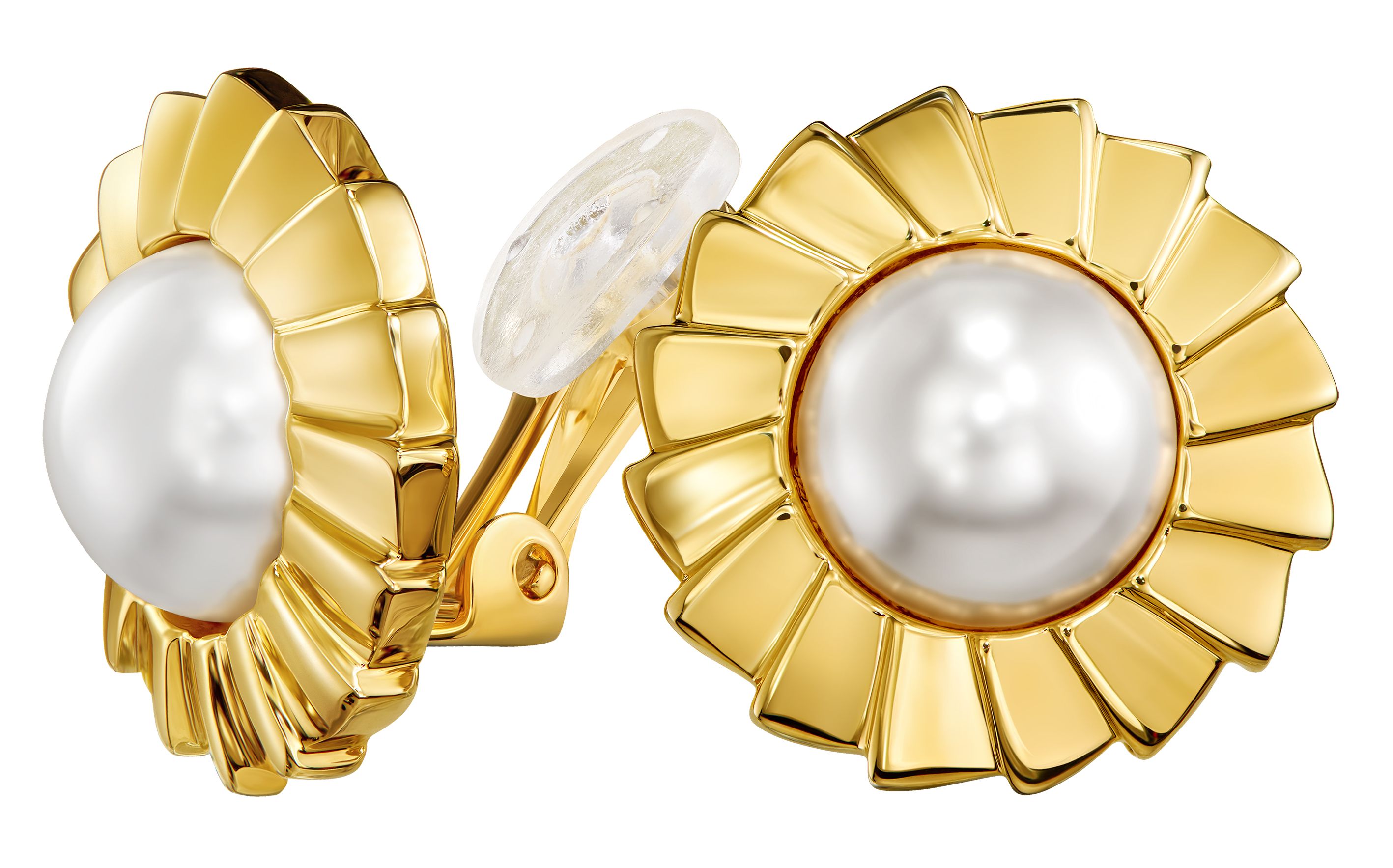 Traveller Ohrclips - Vergoldet - Perle - 10 mm - Weiß - Blume - 19 mm - 114269