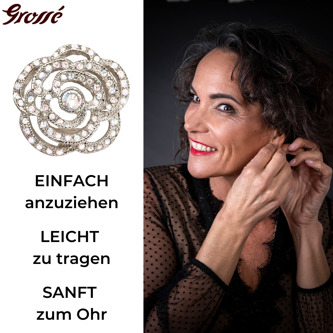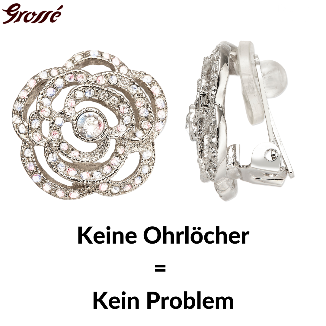 Grossé Ohrclips - Parfum Rose - Silberfarbe - Kristalle - Platiniert - 18 mm - Blüme - GJ64490P