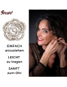 Die glänzende Linie Perfume Rose von Grossé ist eine Linie mit funkelnden Kristallen. Diese silbernen Ohrclips sind wie die Spitze einer Rose geformt, deren Blütenblätter mit Kristallen von Preciosa Crystals besetzt sind. Das Herz besteht aus einem größeren Kristall. Die Ohrclips sind vollständig plattiert, haben einen Durchmesser von 1,8 Zentimetern und wiegen jeweils nur 2,5 Gramm.