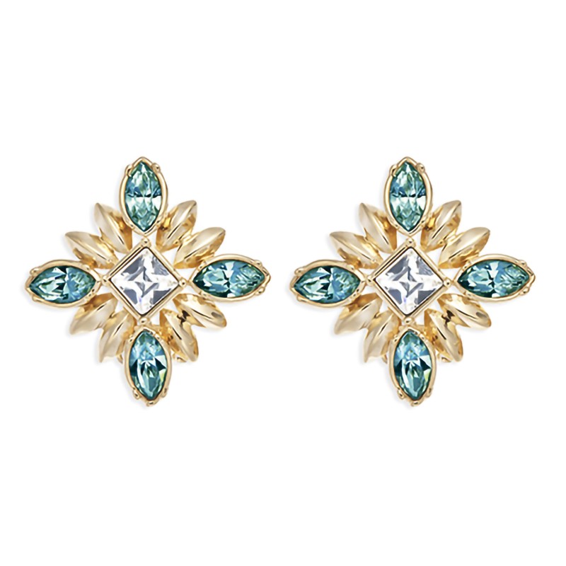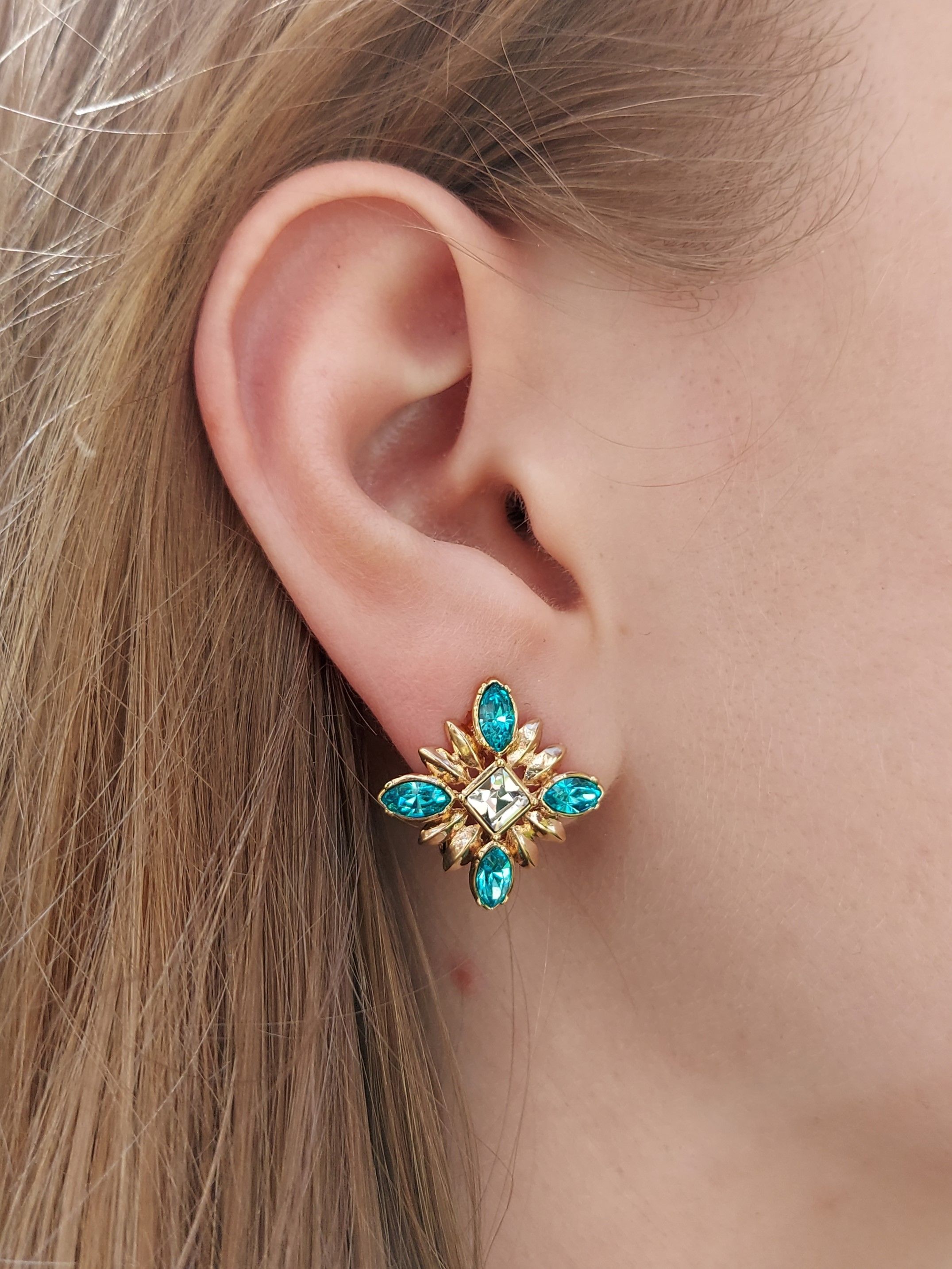 Grossé Ohrclips - Athene - Goldfarbe - Rhinestone - Türkis - 20x20 mm - Vergoldet