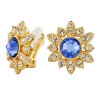 Traveller Ohrclip - 22kt Vergoldet - Kristalle - Blau Violett - Blumenform - 15x16 mm