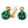 Traveller Ohrclip - 22kt Vergoldet - Kristalle - Echter Malachit - 10 mm - Grün - einzigartig