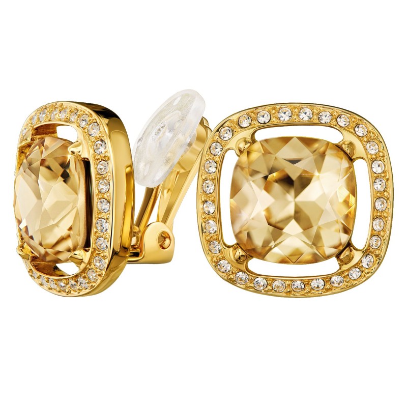 Traveller Ohrclip - 22kt Vergoldet - Kristalle - Hellbraun Topaz - Quadratisch - Ø 15mm