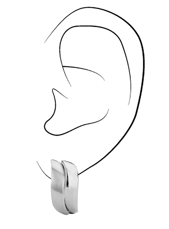 Traveller Ohrclip - Platiniert - Matt/ glänzend - Gewelt - Silberfarbe - 18x9 mm