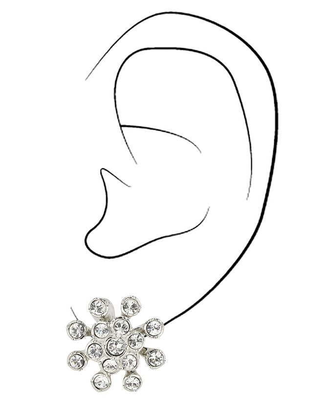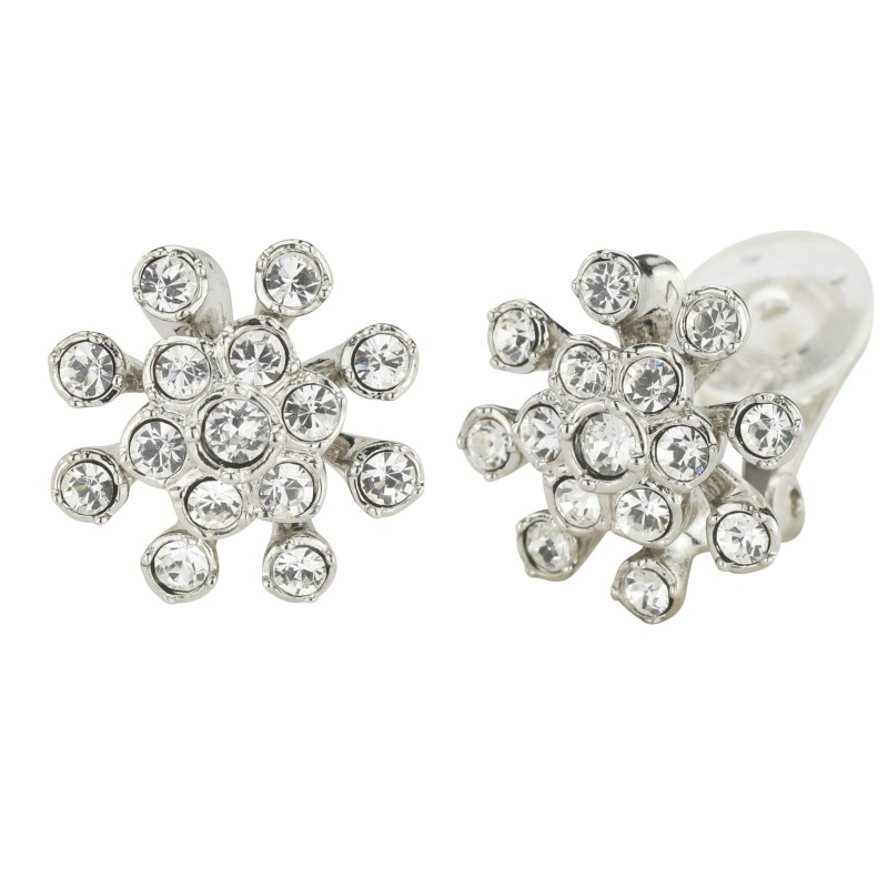 Traveller Ohrclip - Silberfarben - Kriatalle - Blume - Platiniert - 17 mm