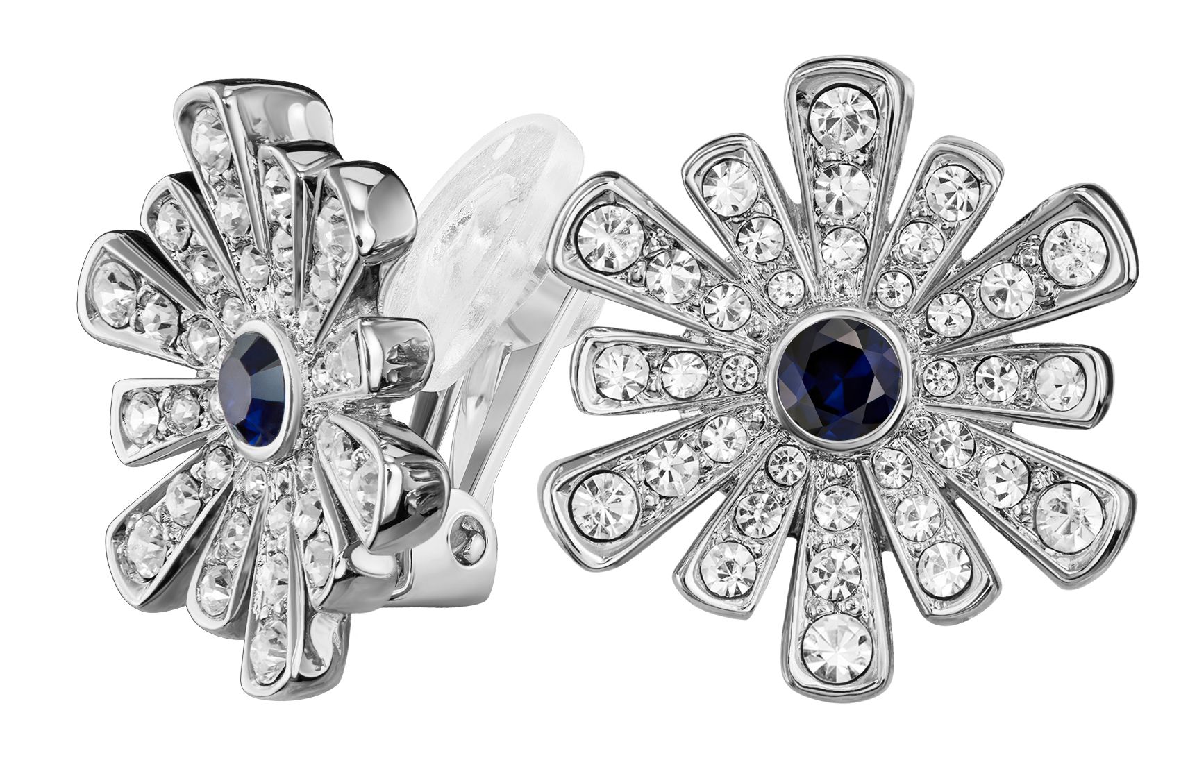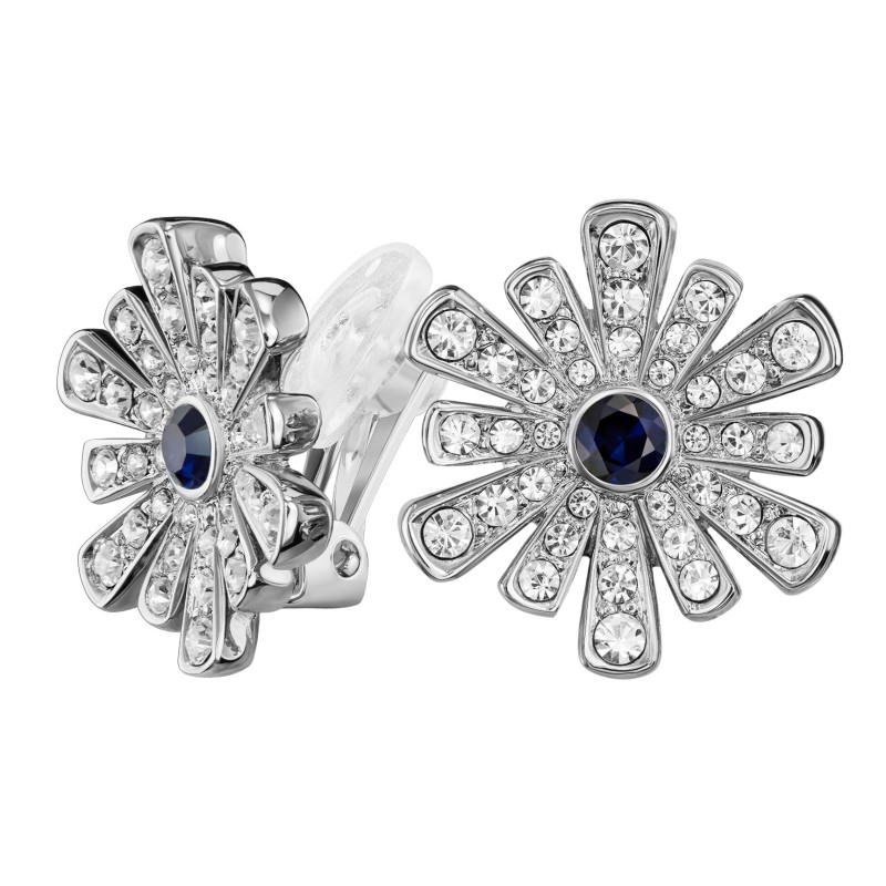 Traveller Ohrclip - Silberfarben - Kristalle - Blau Blumenherz - Blumenform - Platiniert - Ø 15mm
