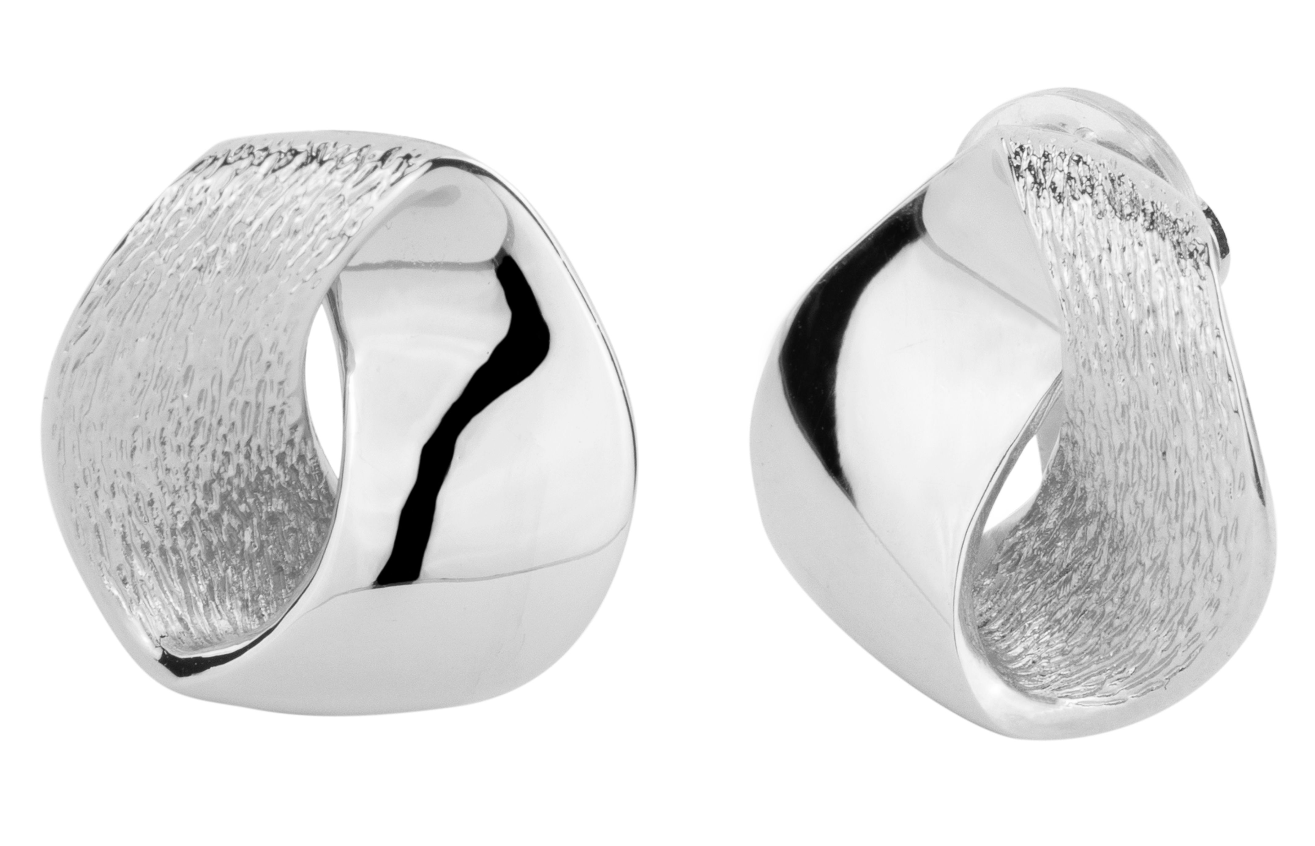 Diese fantastischen Ohrclips von Traveller haben ein einzigartiges, schlankes Design. Die vollständig platinierten Ohrringe haben eine abstrakte Form in einer Art Schleife. Eine Hälfte ist strukturiert, die andere ist glatt. Insgesamt messen die Ohrringe 15 x 14 Millimeter und wiegen jeweils 5,5 Gramm. Dank des einzigartigen Verschlusssystems von Traveller sind diese Clips sehr bequem, sicher und leicht zu tragen.